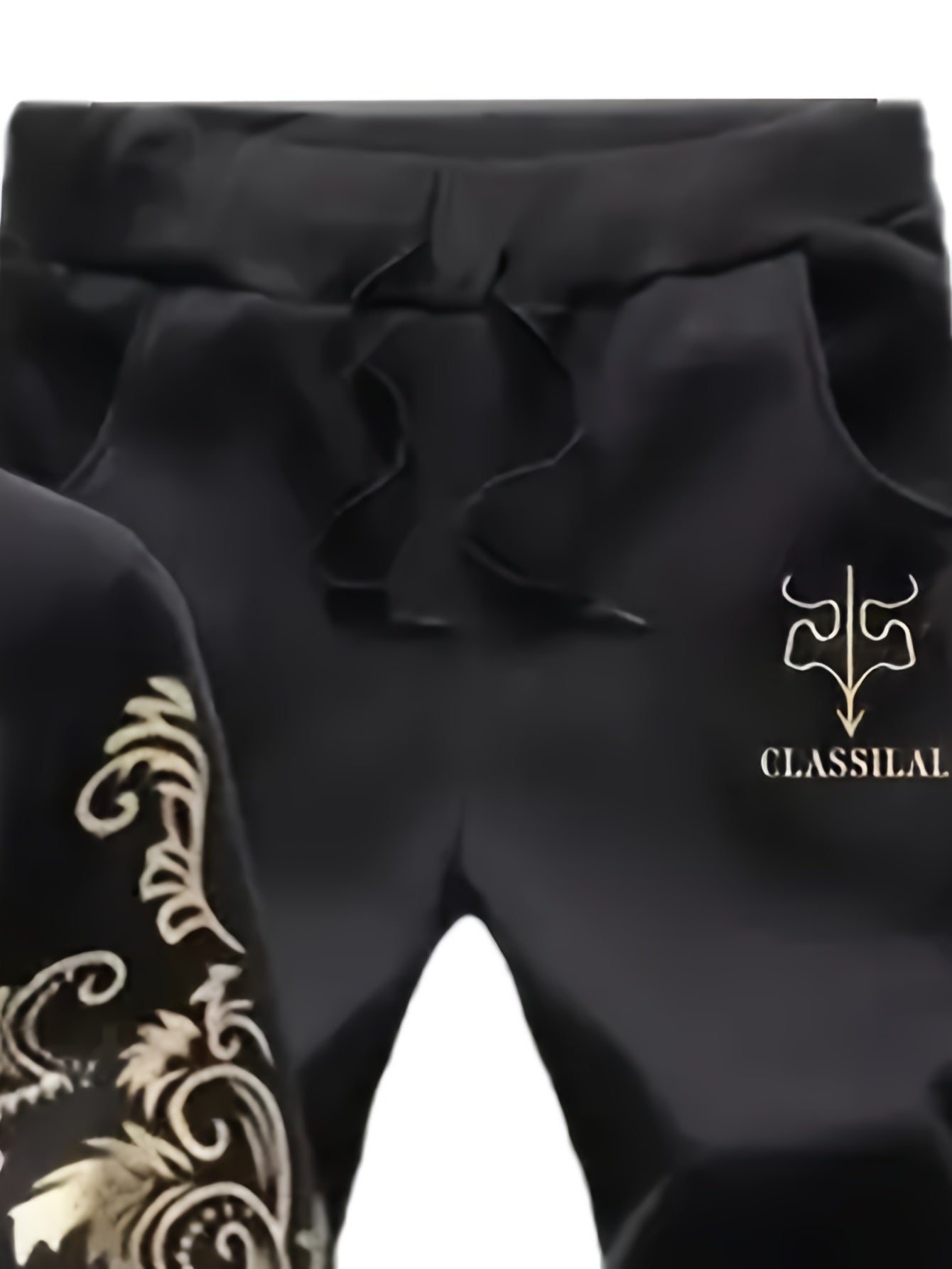 Men's Casual Sportswear Set Knit Polyester Stand Collar Zip-Up Jacket & Drawstring Pants