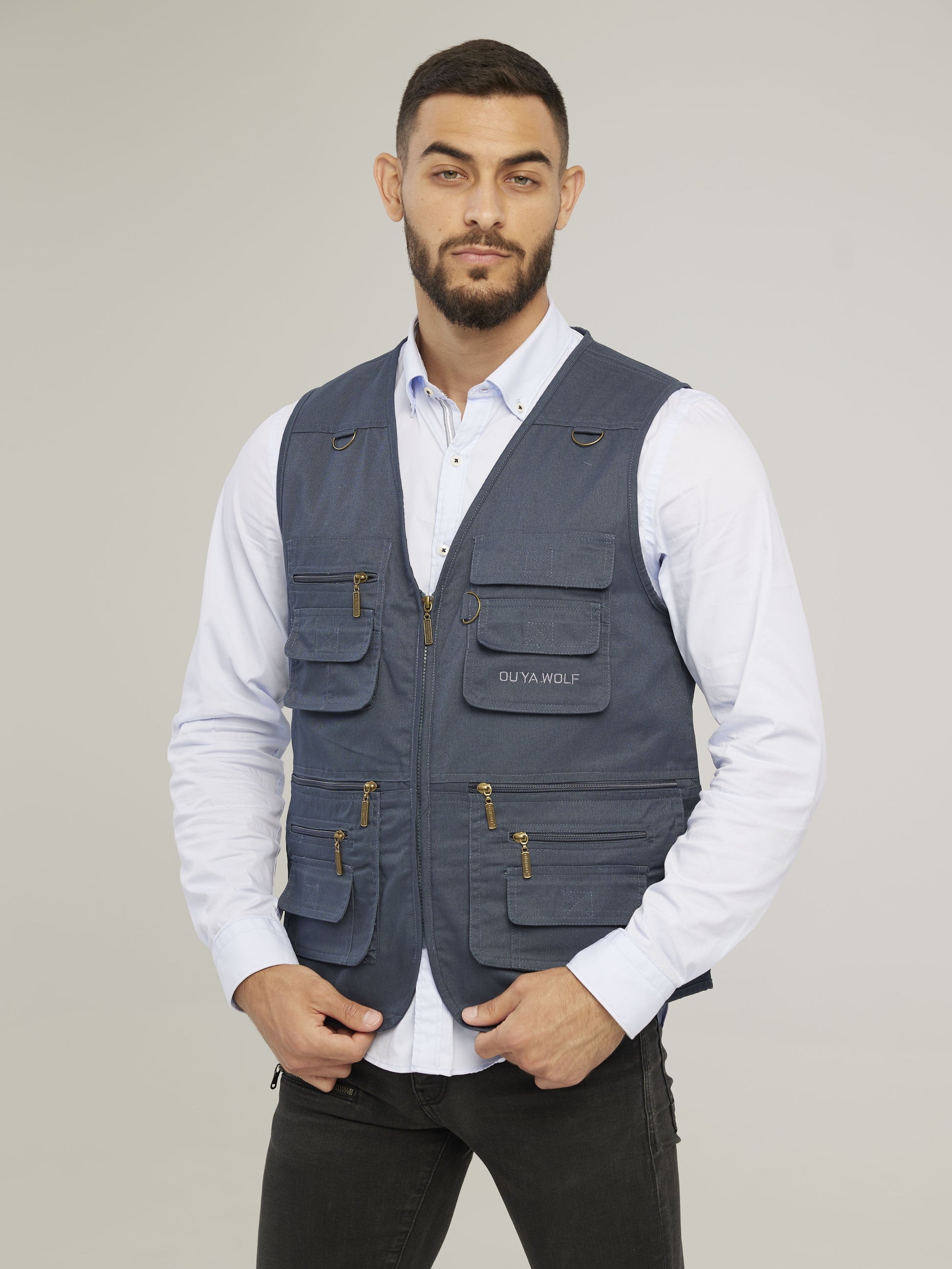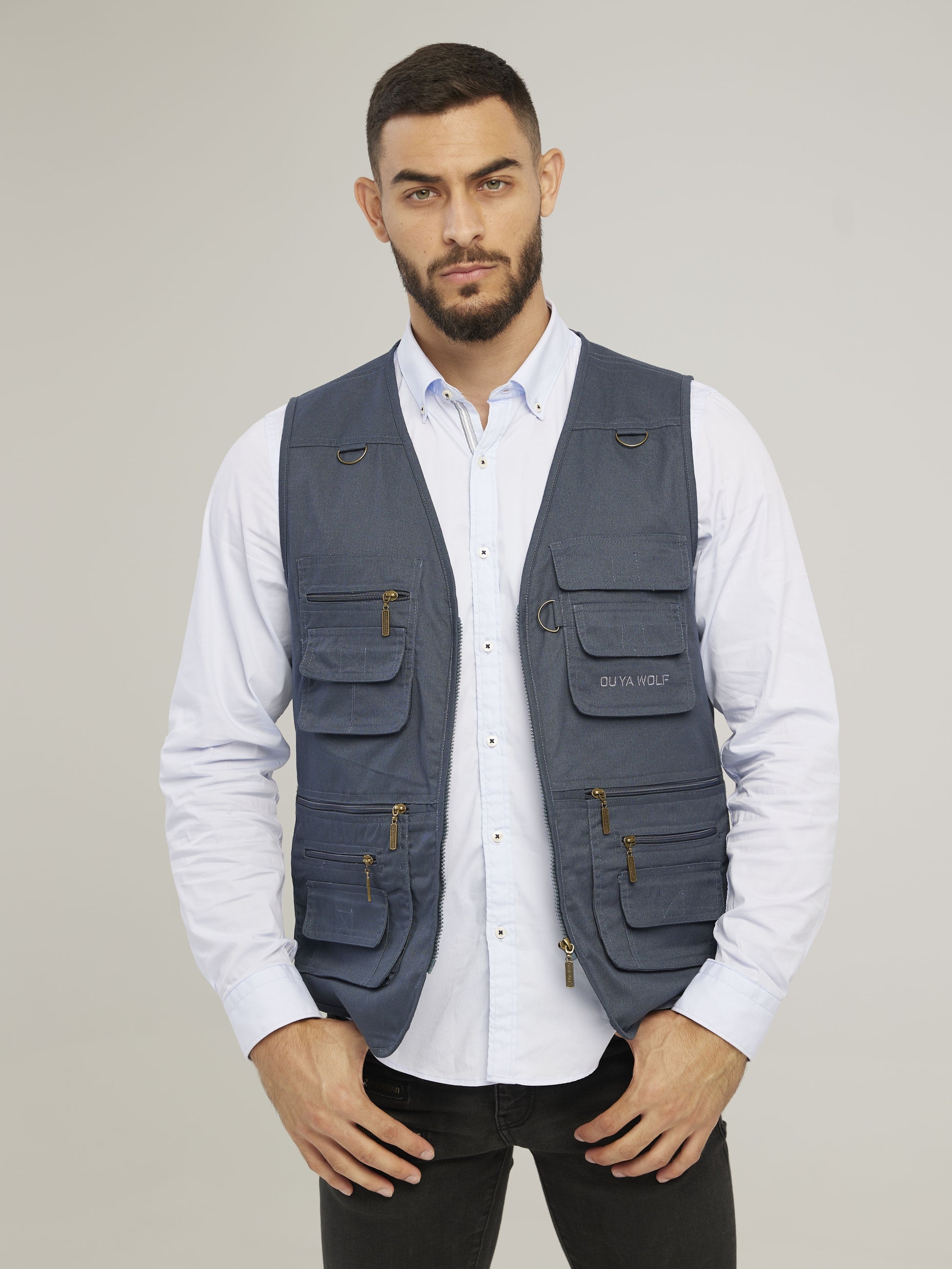 Men's Cotton Polyester Cargo Vest with Multiple Pockets for Outdoor Activities