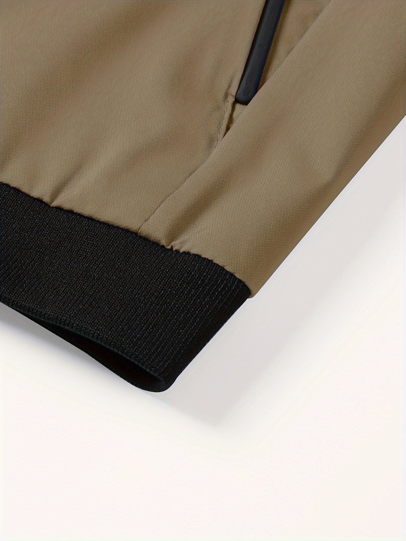 Men's Black Polyester Bomber Jacket and Jogging Pants Set with Letter Embroidery