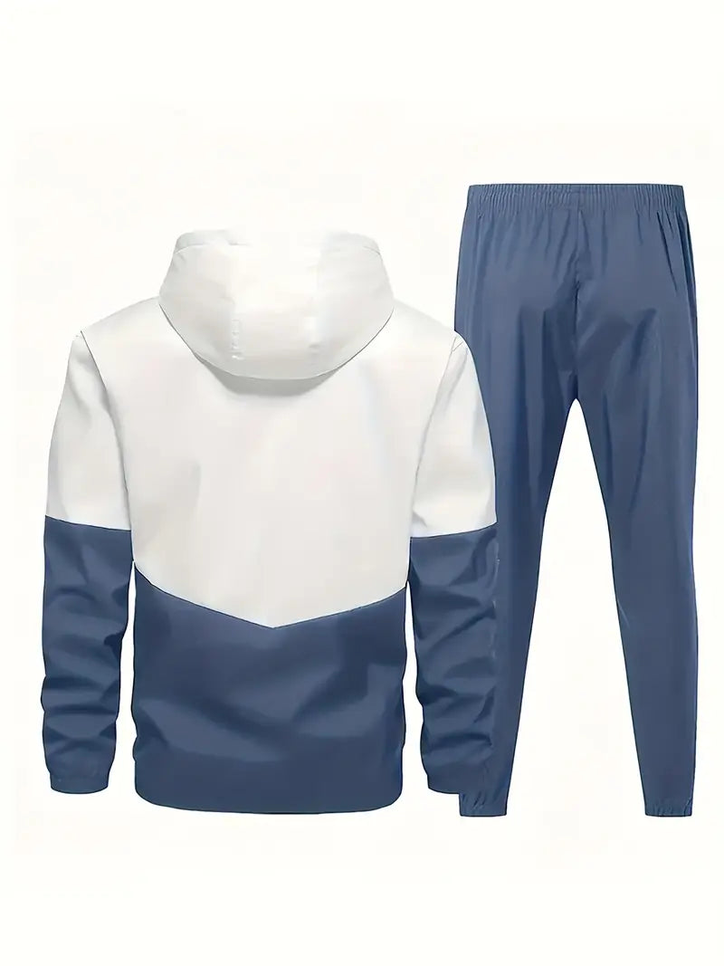 Men's Color Block Hoodie and Joggers Set Polyester All-Season Casual Zip Detail