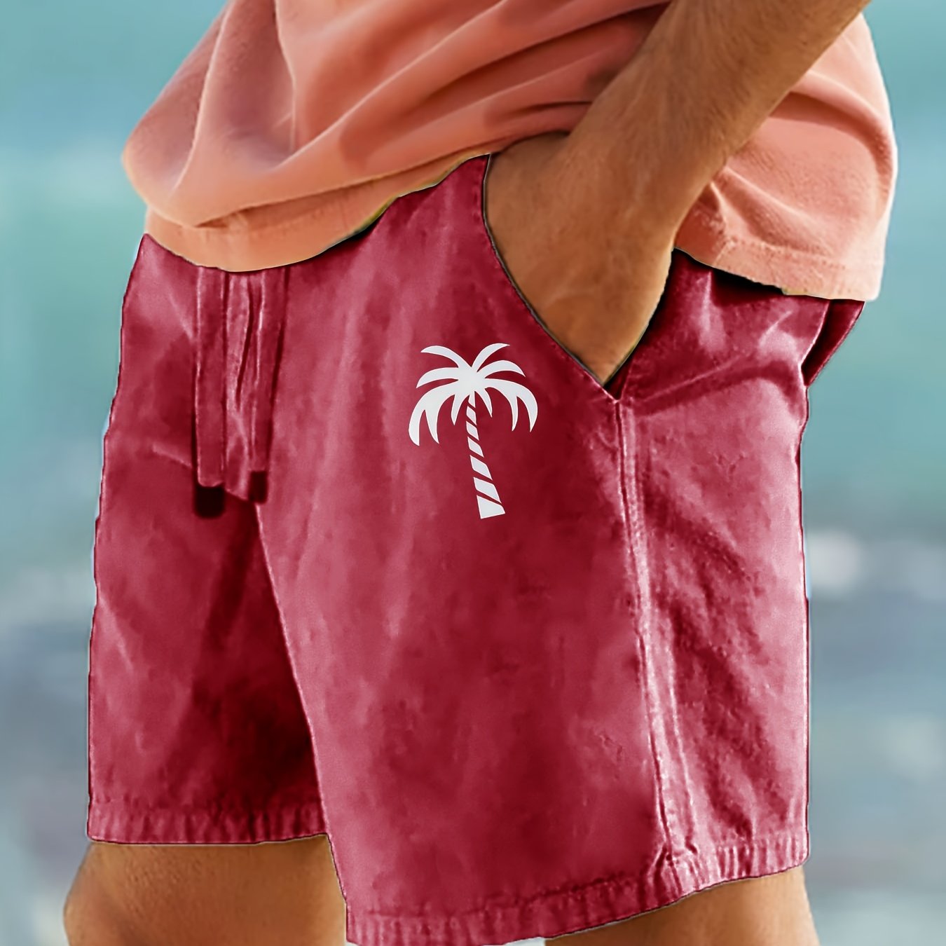 Men's Cotton Beach Shorts with Drawstring Print Casual Summer Lightweight