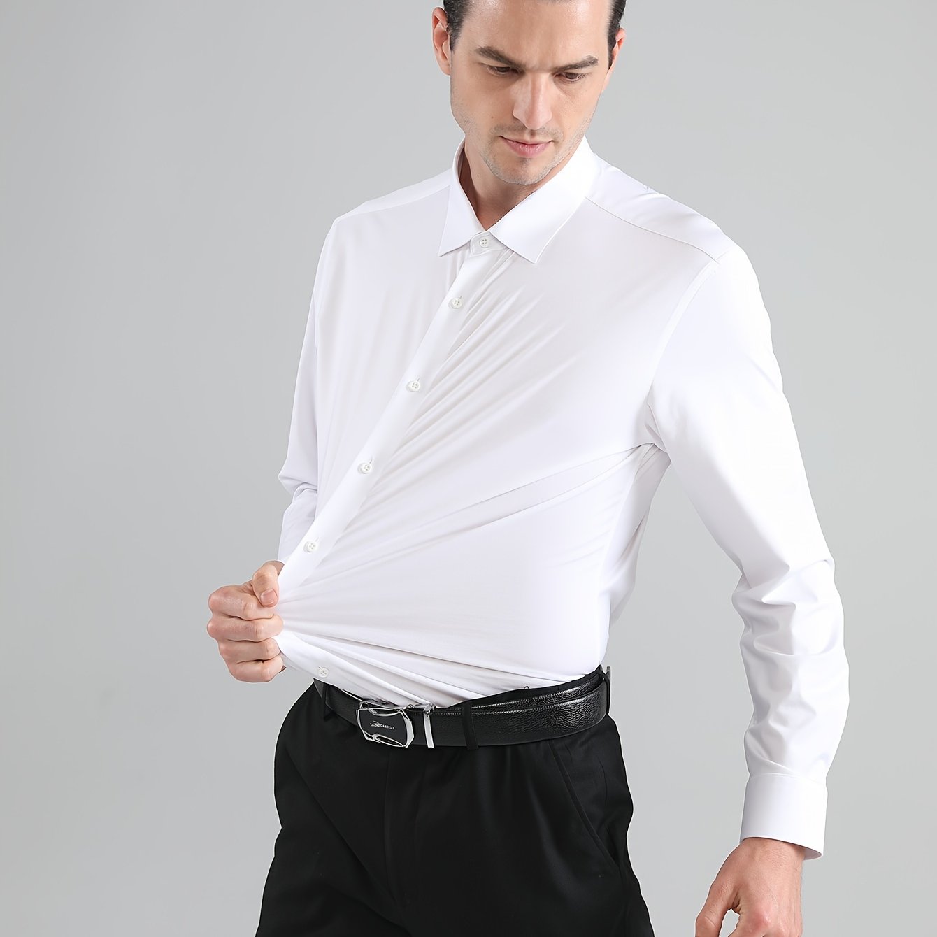 Men's Solid Color Long Sleeve Dress Shirt Stretch Polyester Business Casual Button-Up Collared