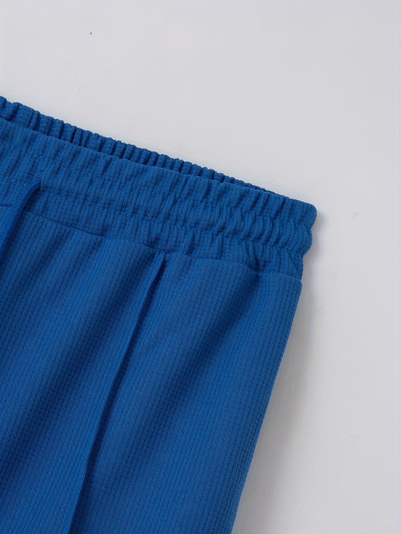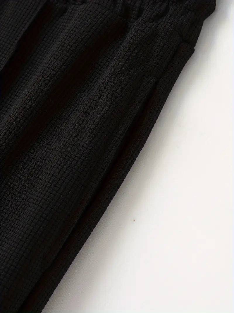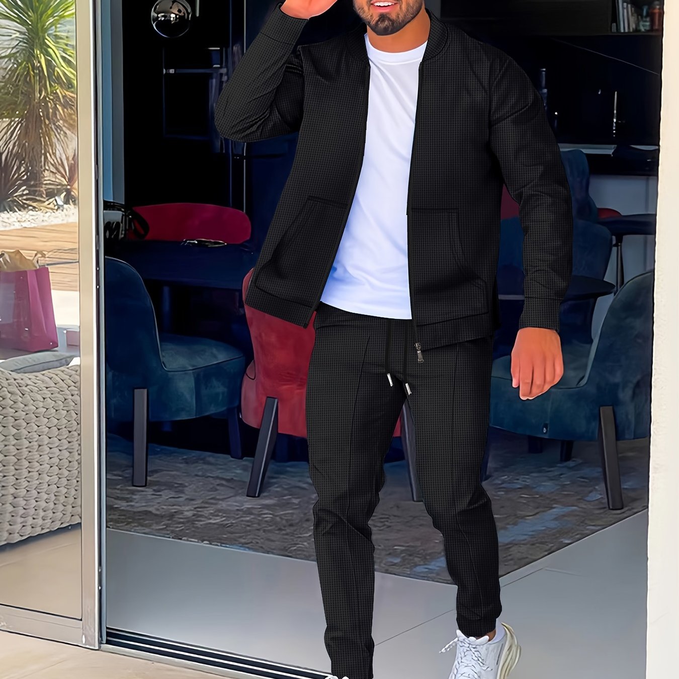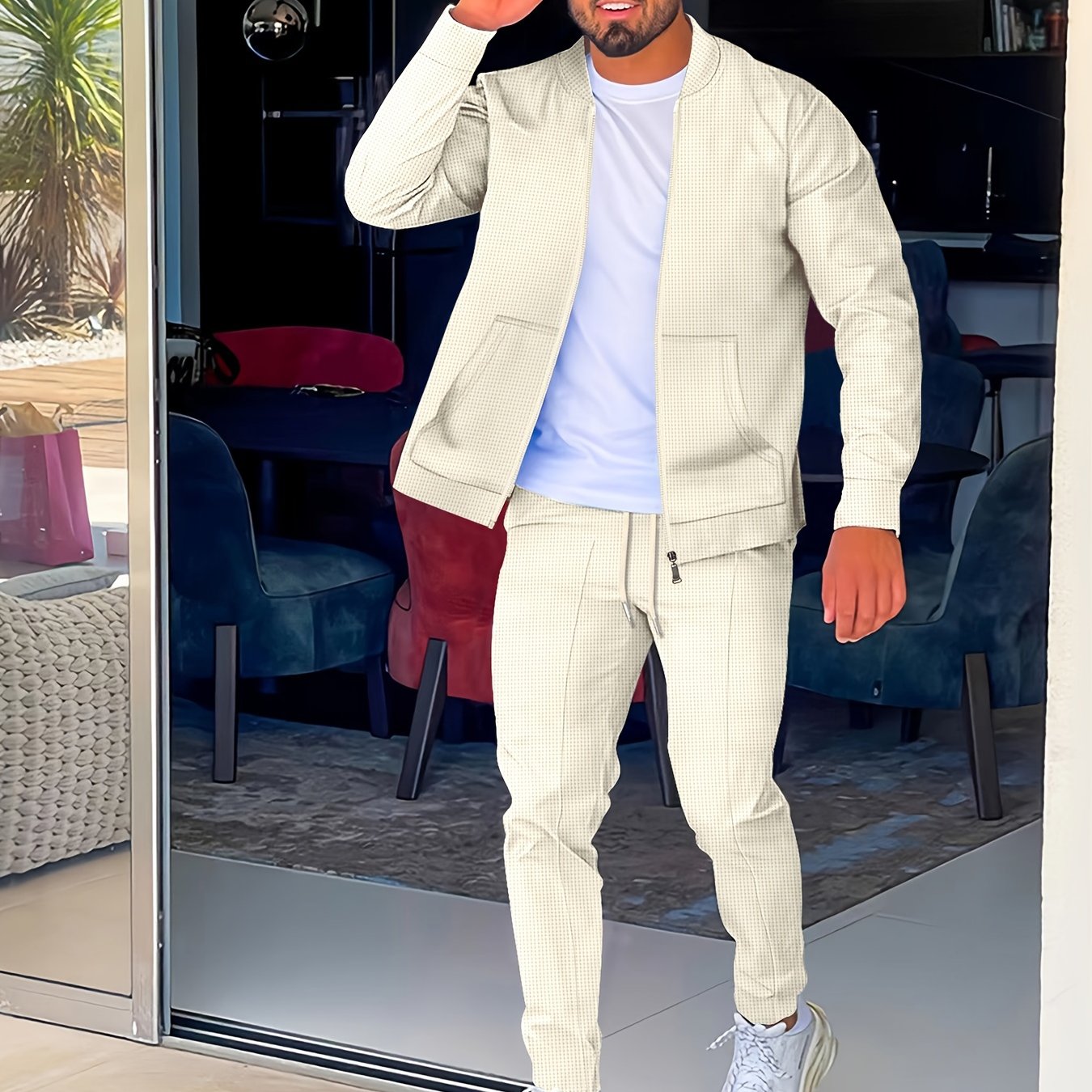 Men's Grey Waffle Knit Baseball Collar Sports Set Zip-Up Pants with Drawstring Waist