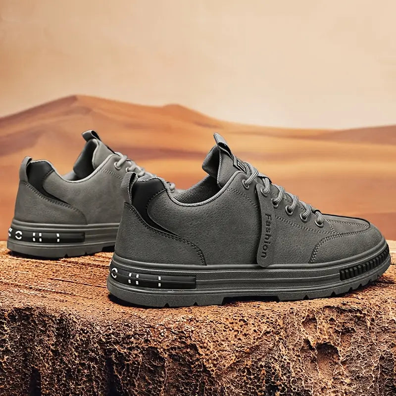 Men's Low-Top Casual Sneakers Solid Color Lace-Up Ankle Shoes for Hiking Daily Outdoor