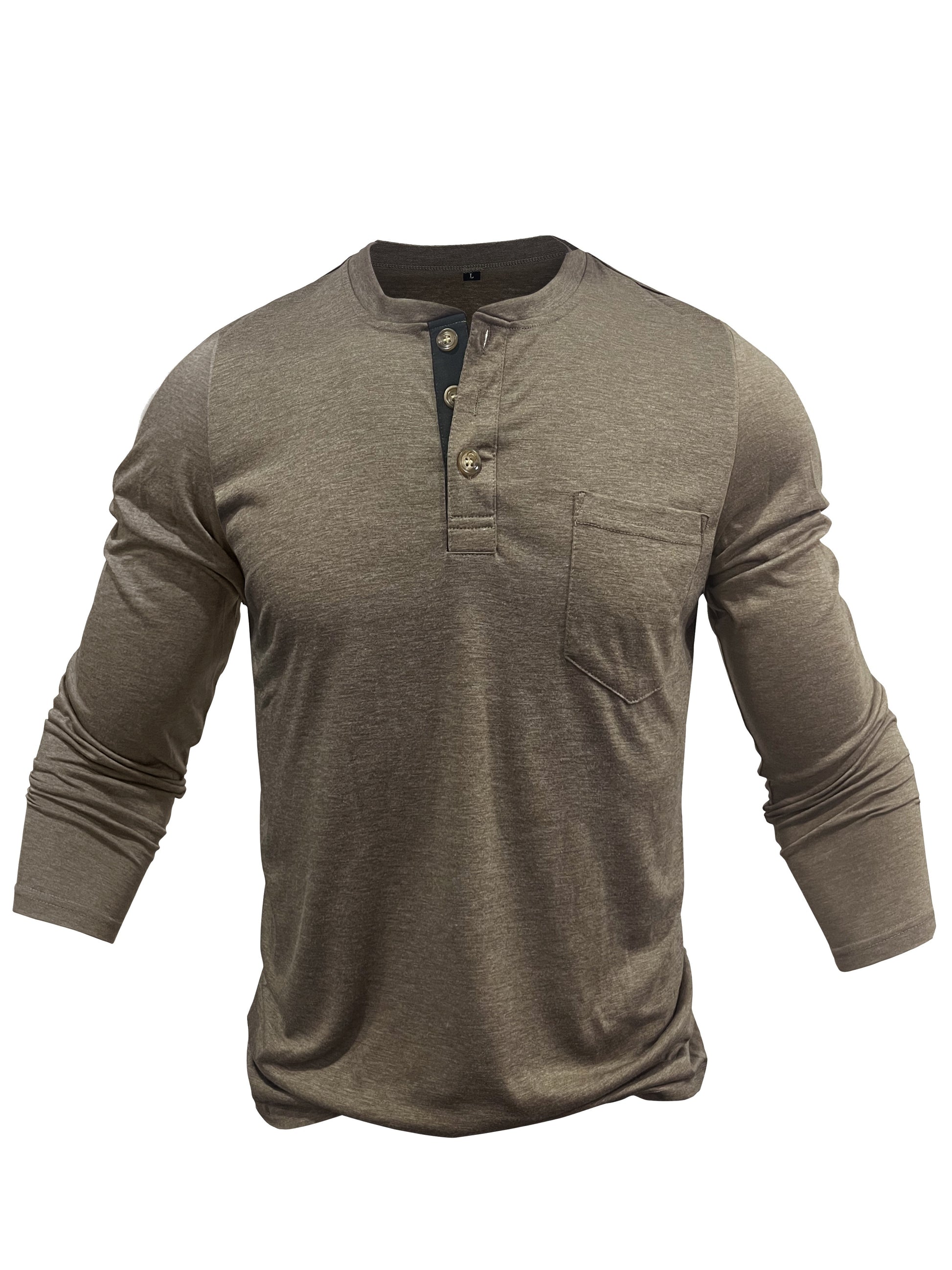 Men's Olive Green Henley Shirt Big & Tall Casual Long Sleeve Stretch