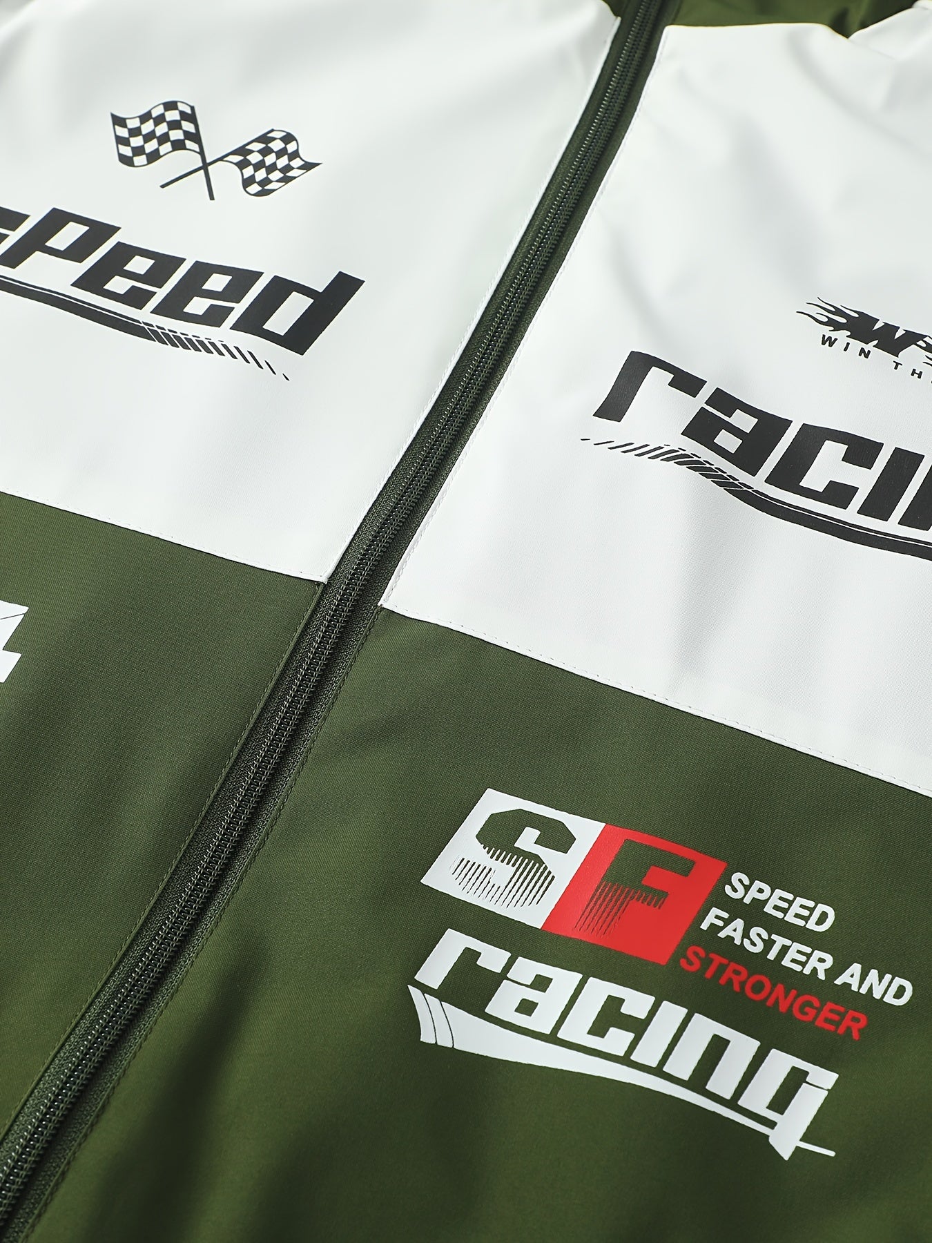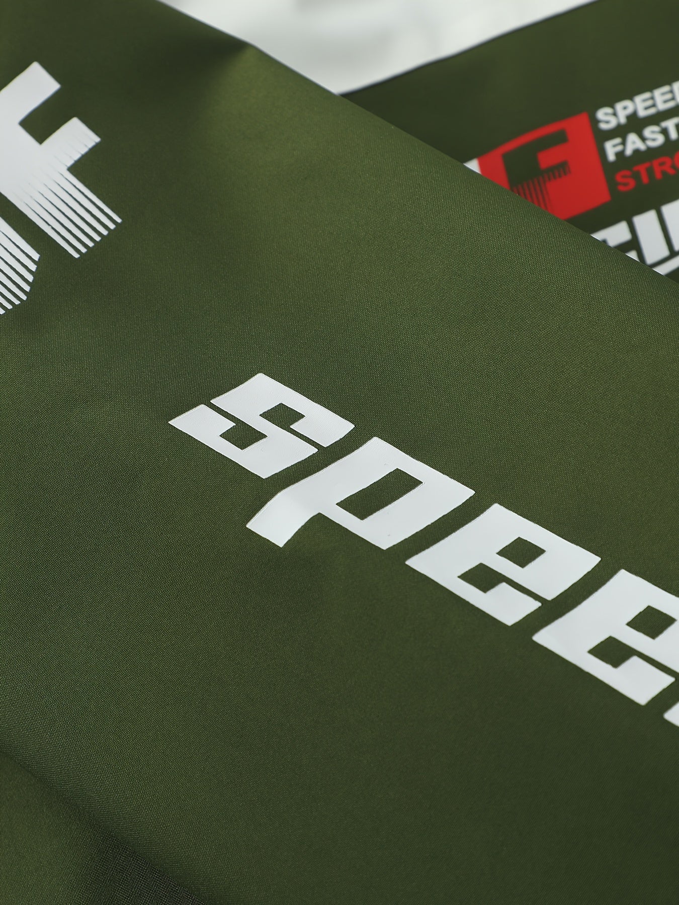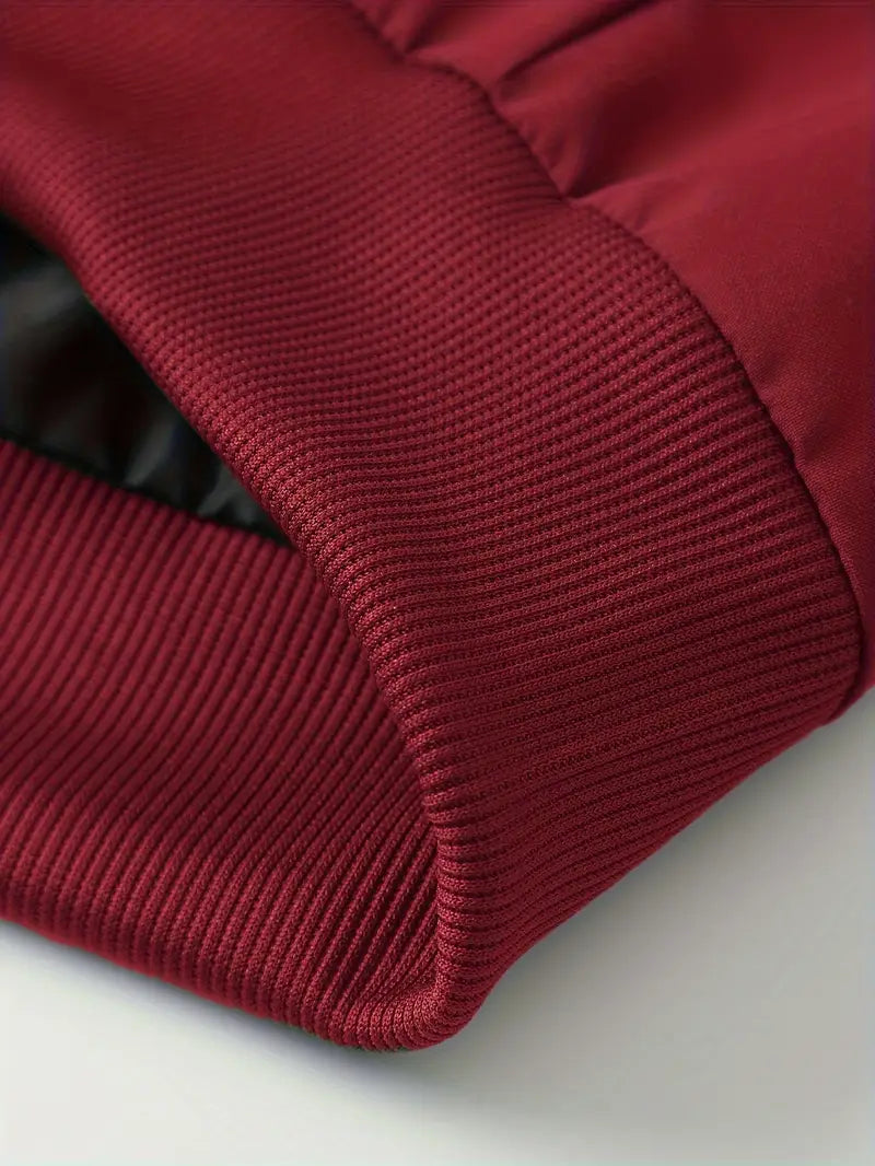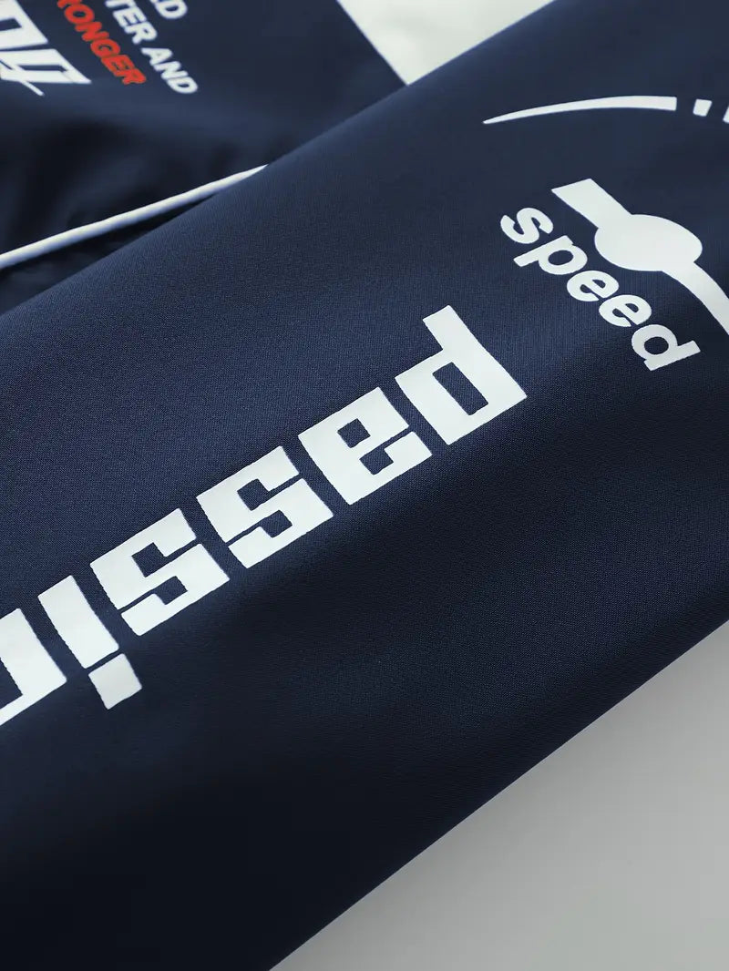 Men's Polyester Bomber Jacket with Zipper Stand Collar Long Sleeves Letter Print Casual