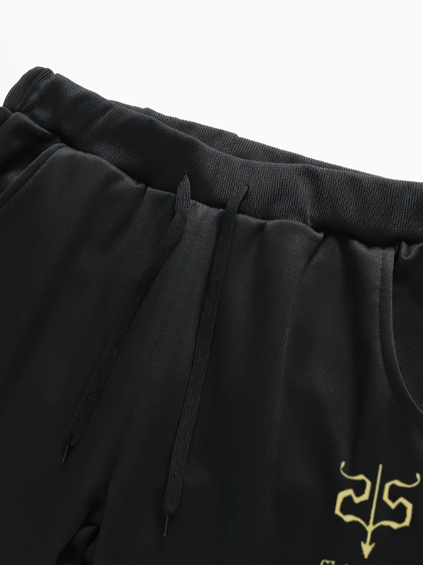 Men's Polyester Long Sleeve Sports Suit with Collared Neck and Print for Spring and Autumn