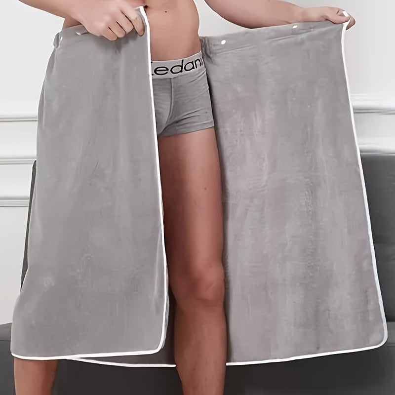 Men's Quick-Drying Bathrobe with Adjustable Elastic Towel Embroidered Soft Absorbent 69x140cm