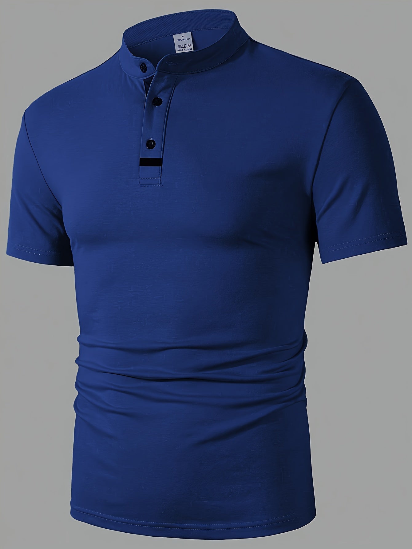 Men's Red Casual Short Sleeve Shirt with Button Crew Neck Lightweight Polyester for Golf and Casual Wear
