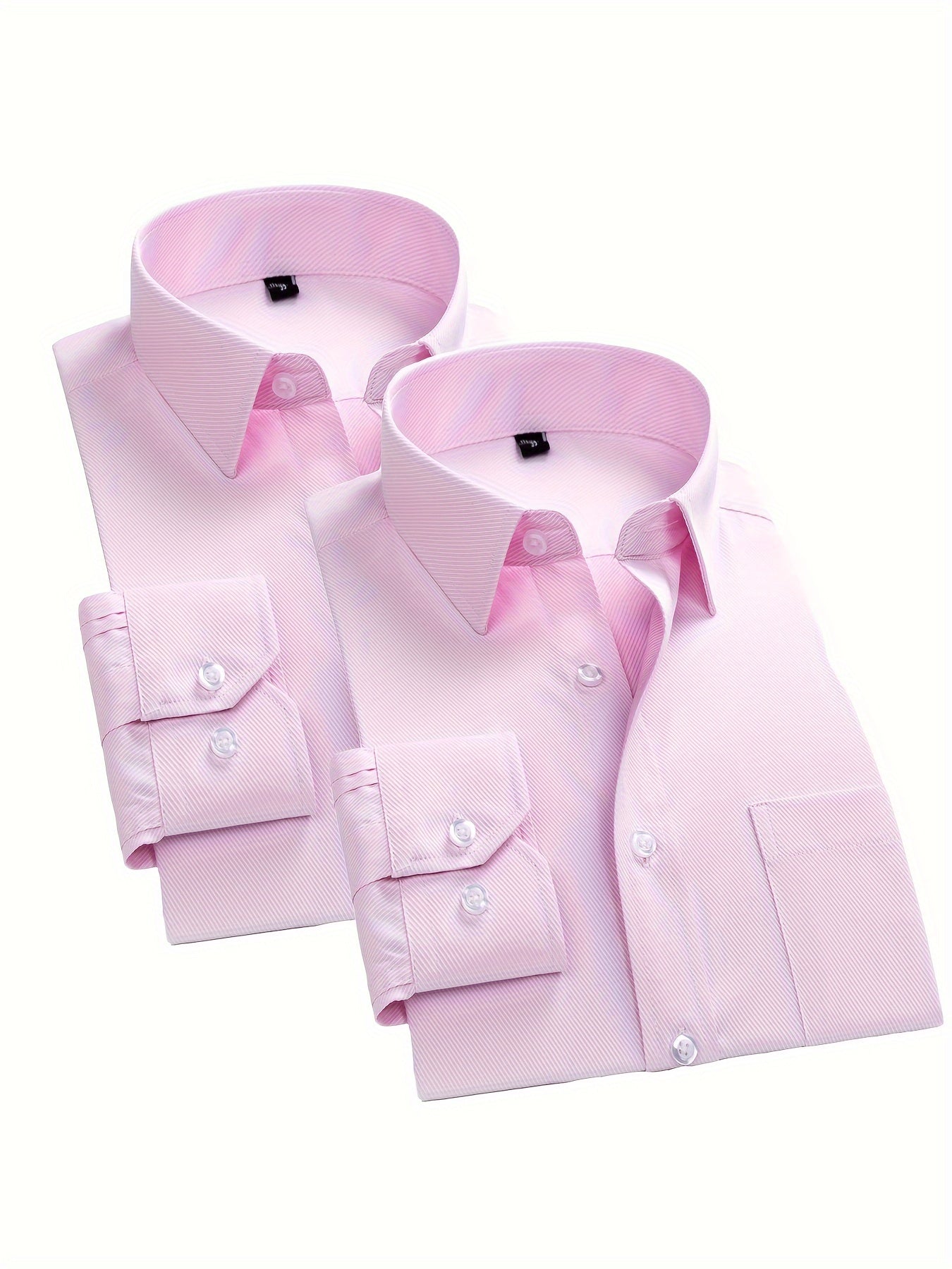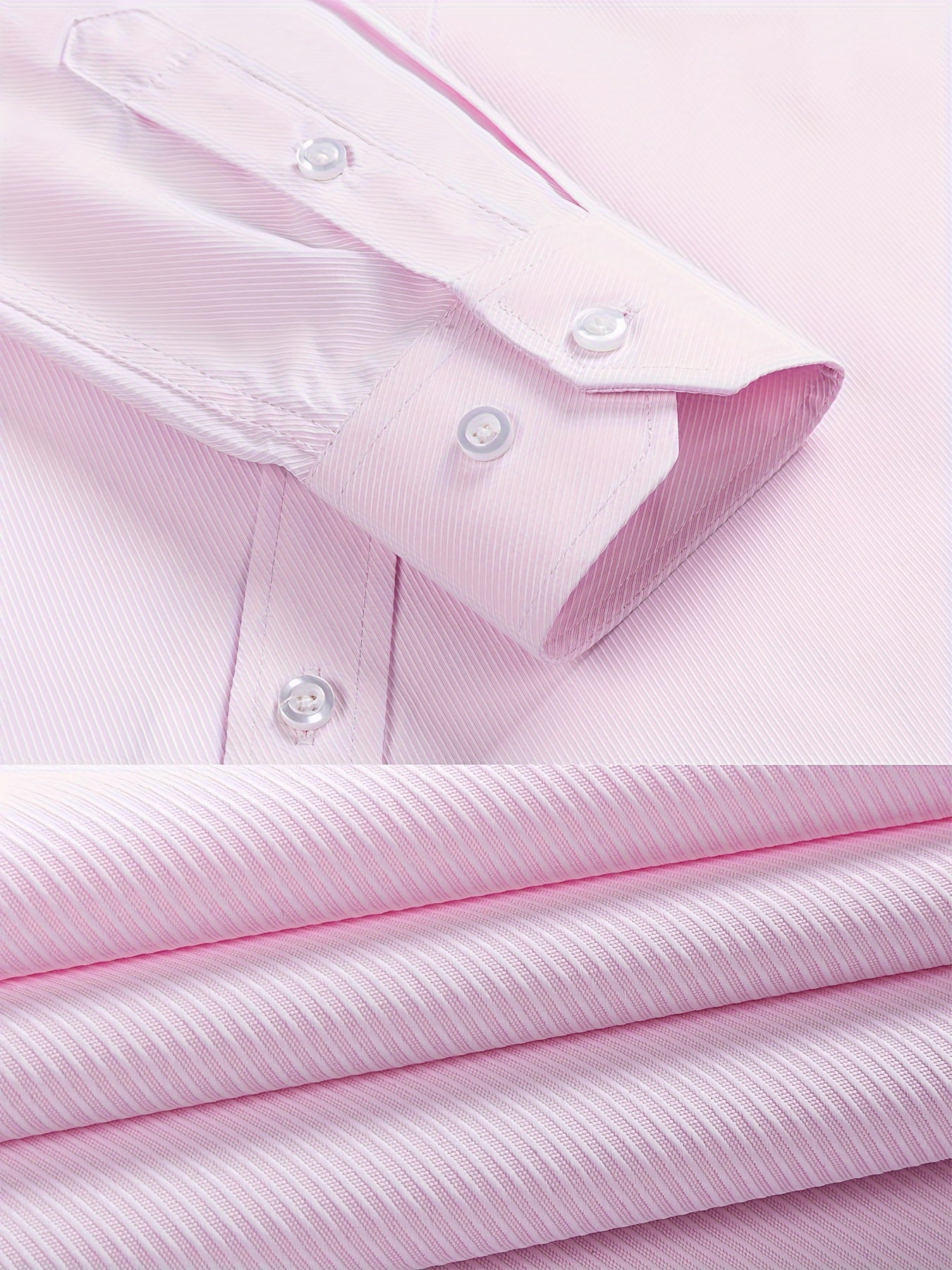 Men's Solid Color Long Sleeve Cotton Blend Shirt for Business Casual