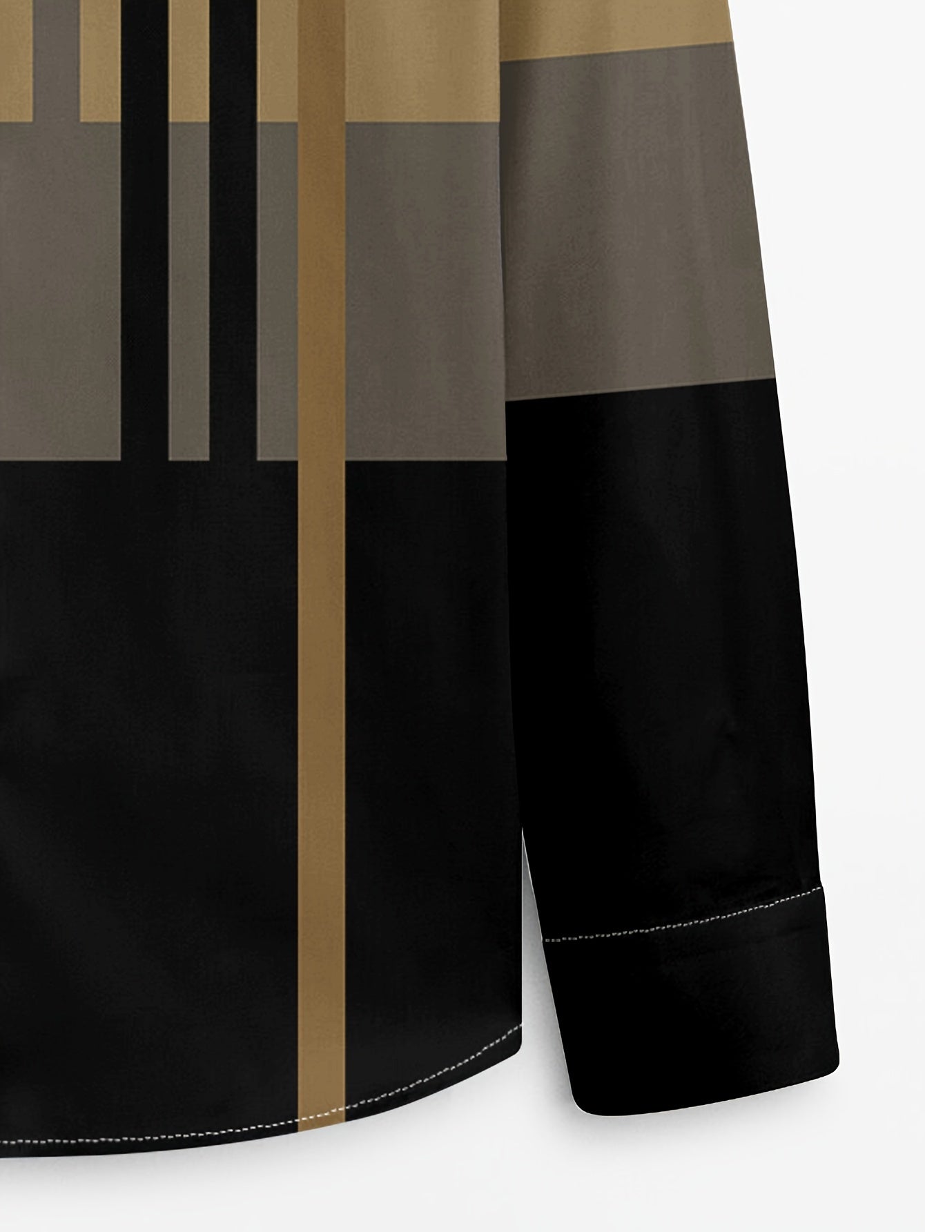 Men's Casual Printed Long-Sleeve Shirt Breathable Spring Autumn Polyester Button-Up