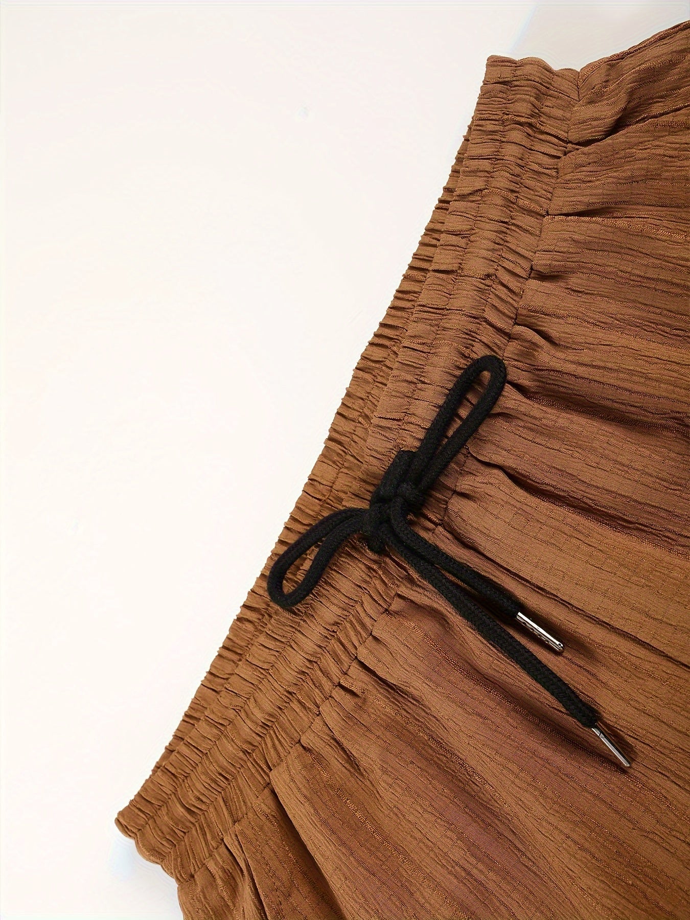 Men's Summer Casual 2-Piece Outfit Solid Color Shirt and Drawstring Pants
