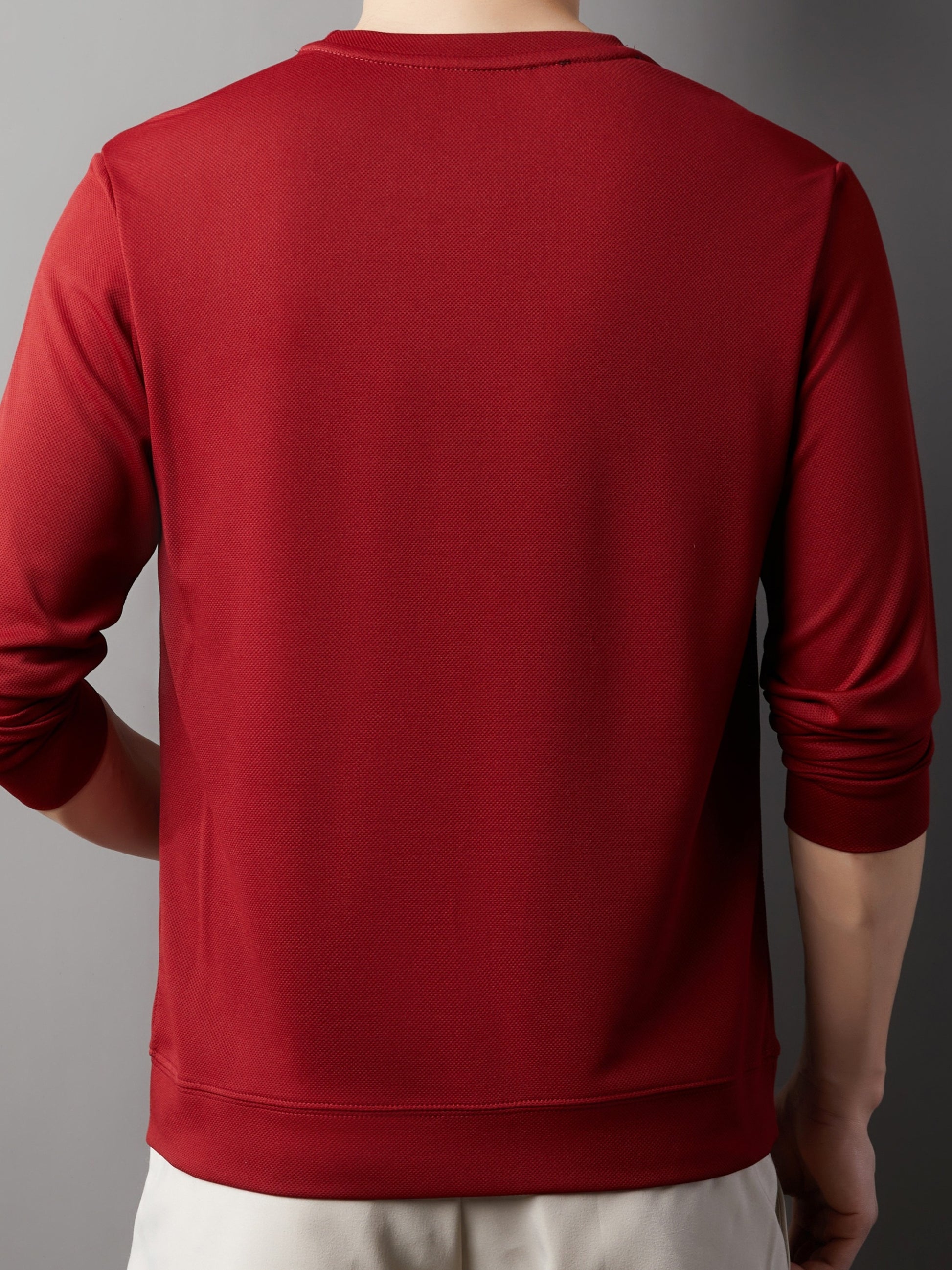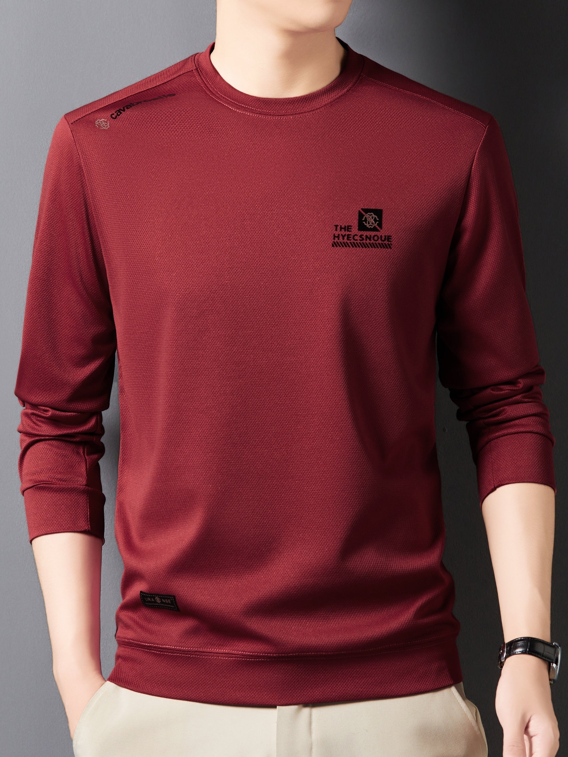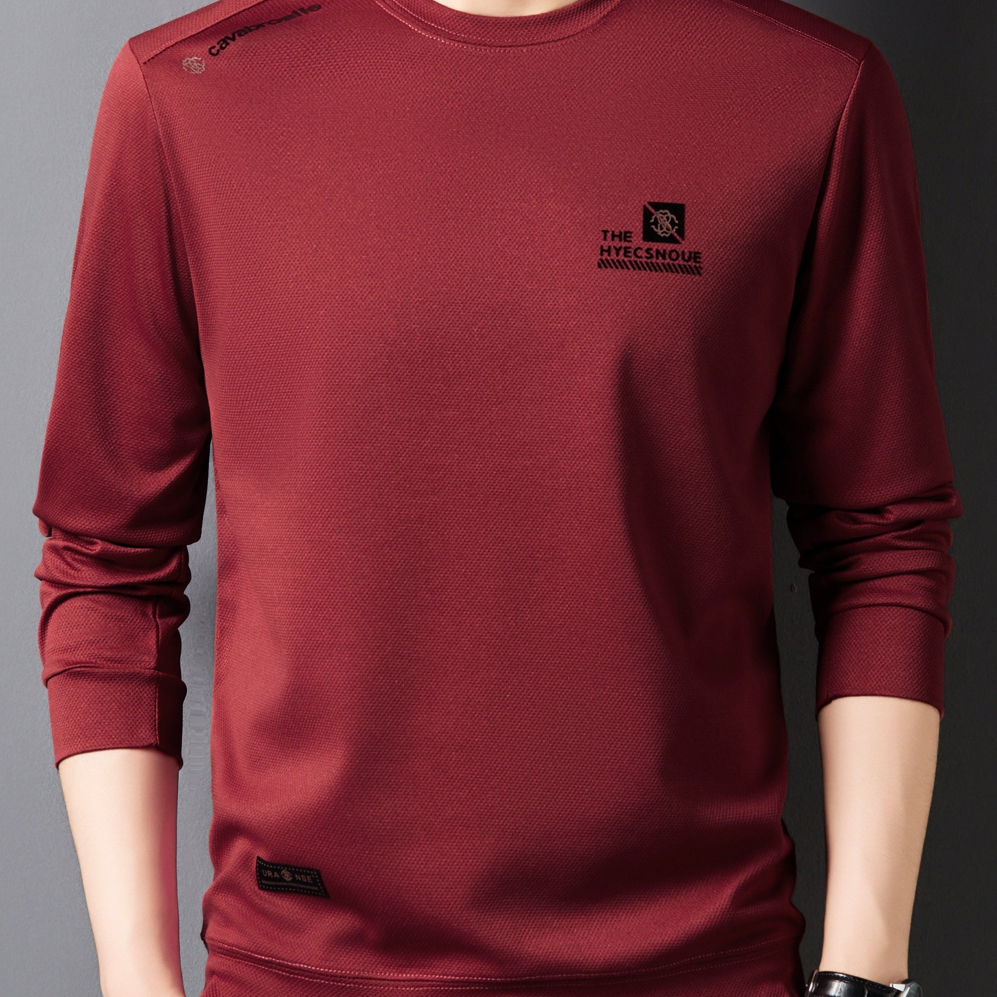 Men's Long Sleeve Crew Neck Sweatshirt with Chest Emblem Polyester Casual Autumn