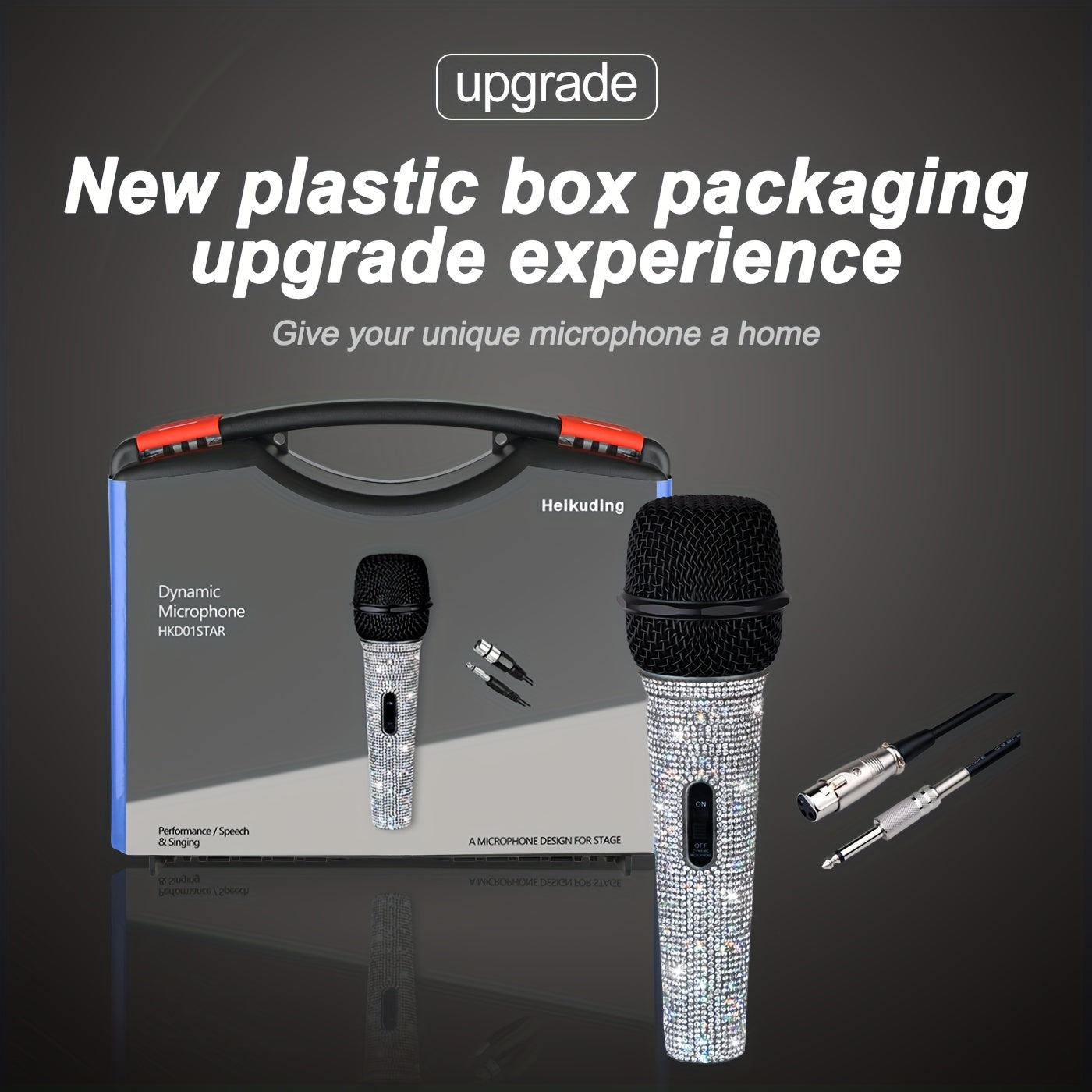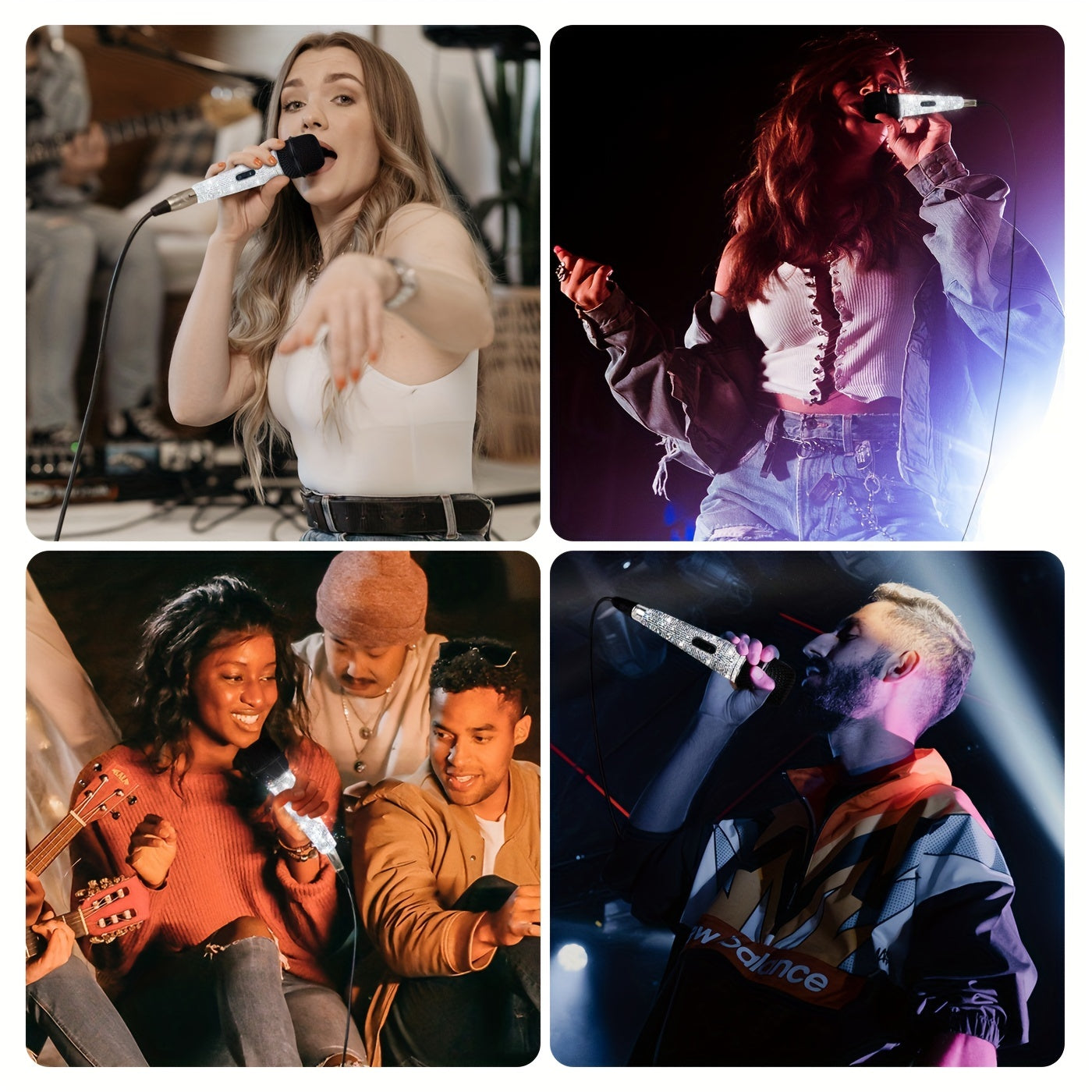 Metal Handheld Microphone with Rhinestones for Singing 6.35mm Jack Cable Included