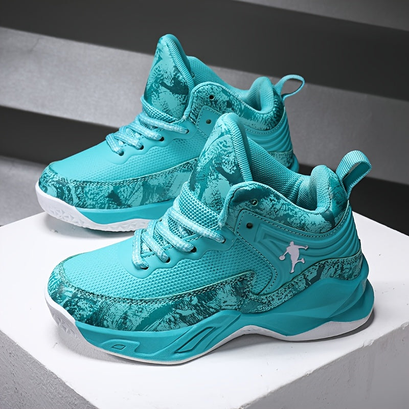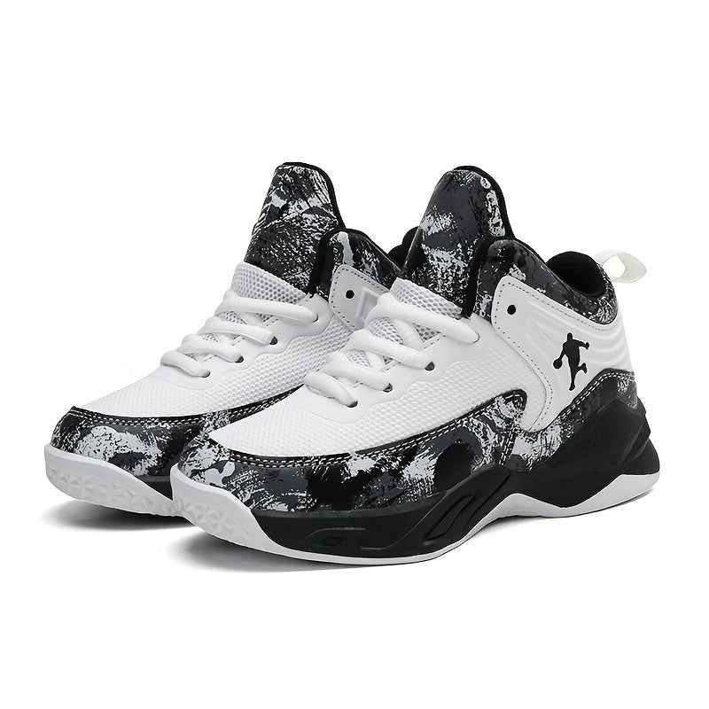 Youth Mid-Top PU Sports Sneakers for Boys and Girls Red Black TPR Sole Outdoor Casual