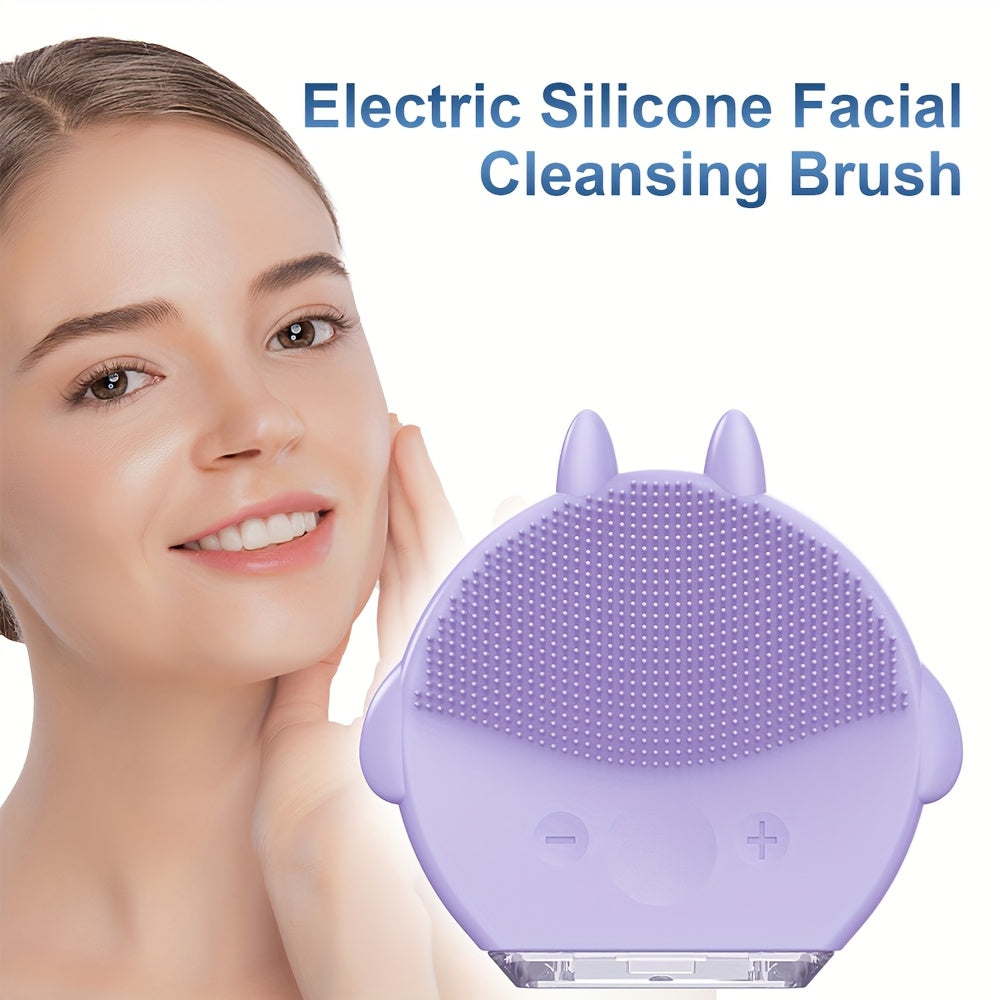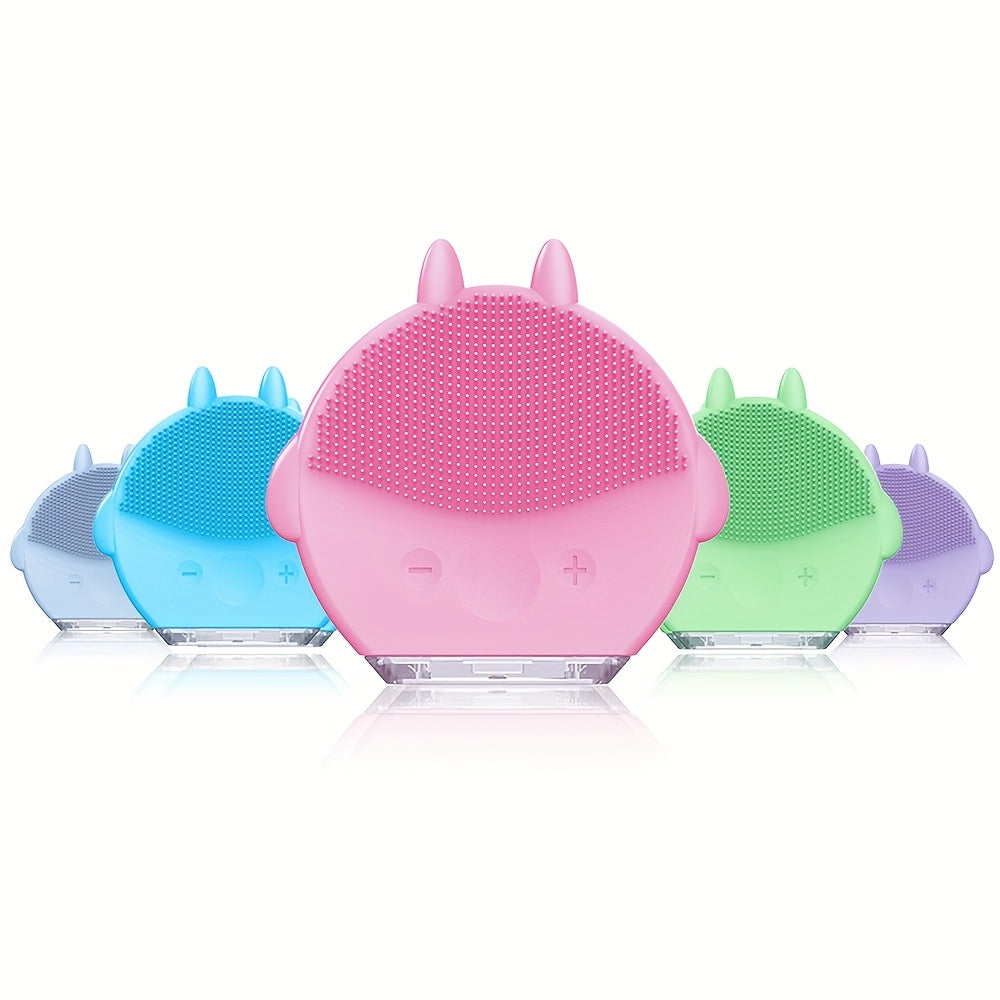 Mini Cartoon Electric Face Brush with 12 Massage Modes USB Rechargeable Exfoliating Skincare Tool