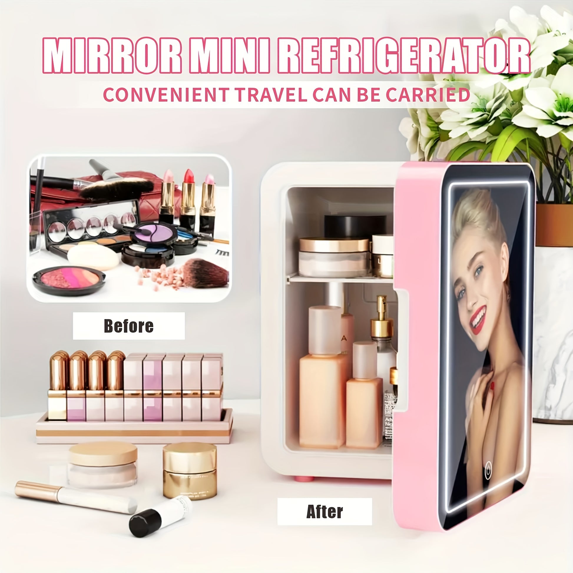 Mini Portable Fridge 4L with Mirror LED Display for Travel Home Office