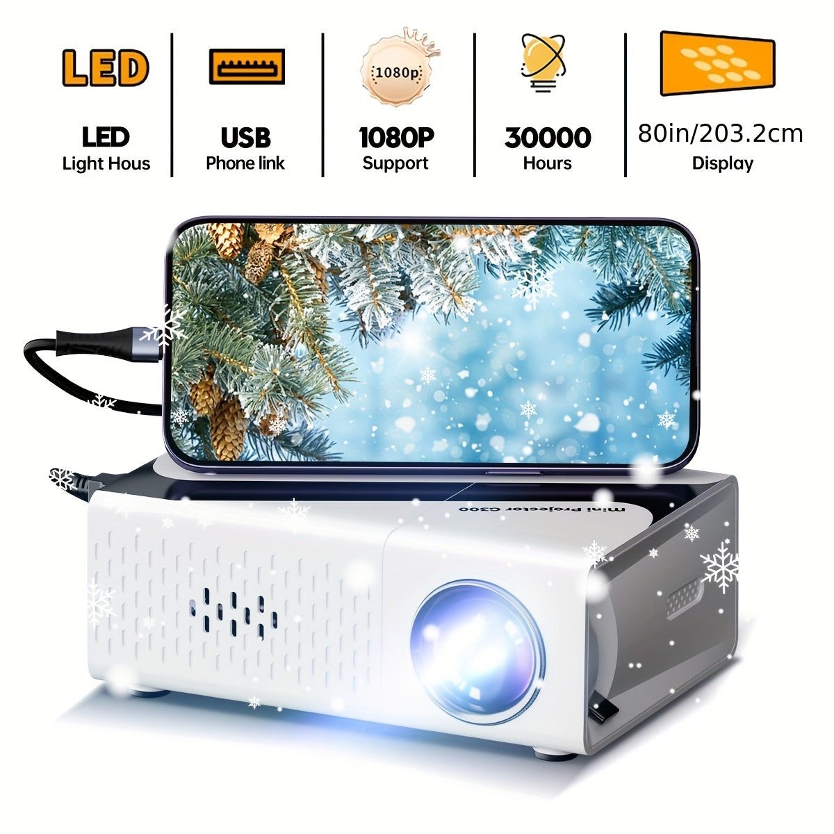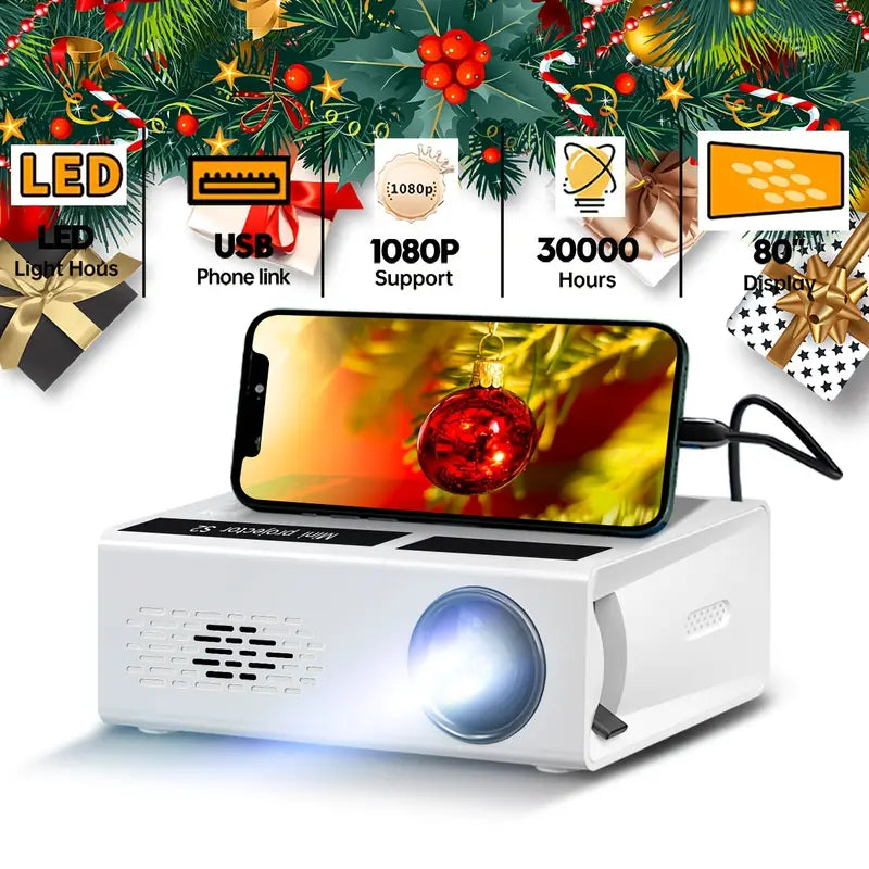 Mini White Portable Projector 1080P Full HD Support for Movies and Gaming
