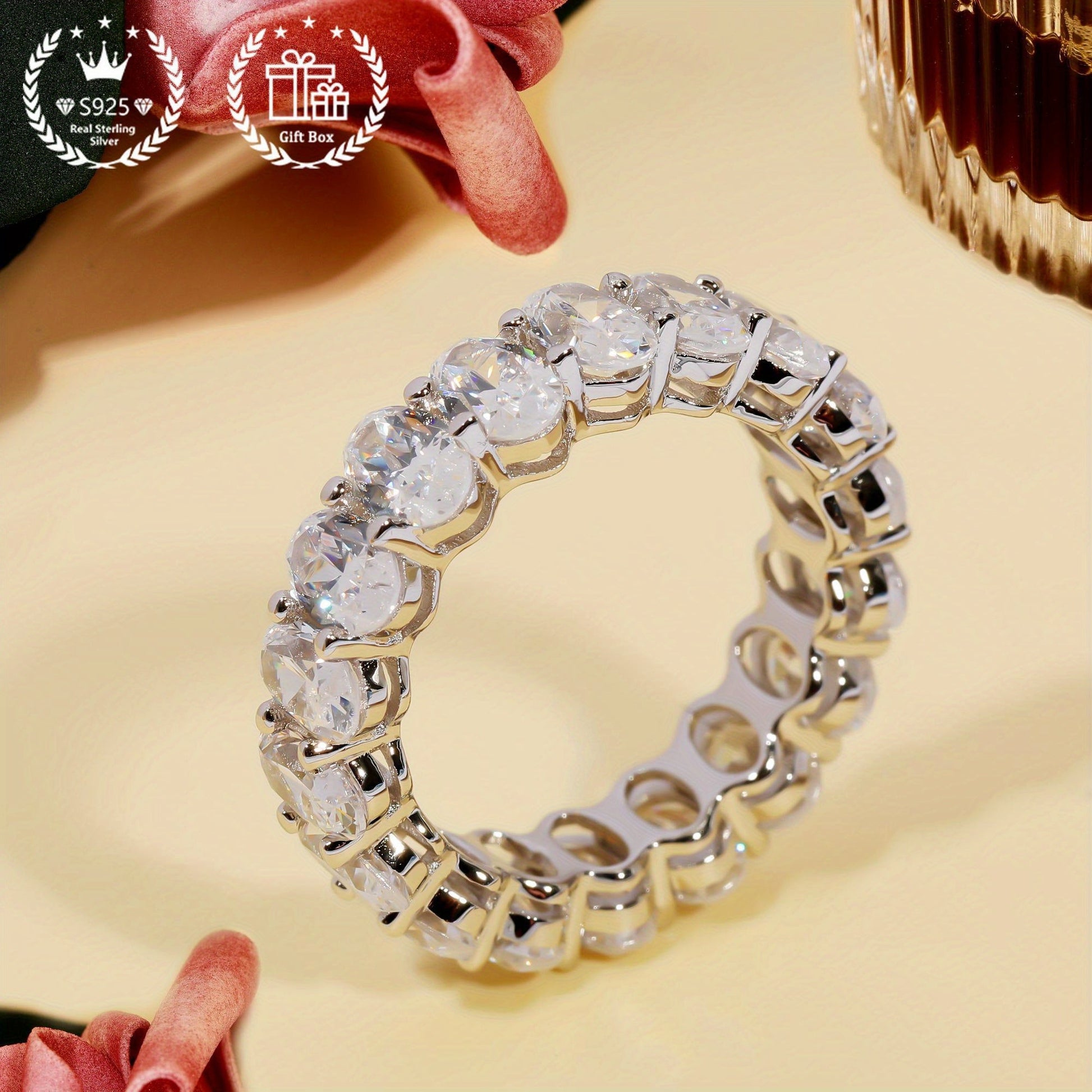 Minimalist Jewelry 1PC Cubic Zirconia Inlaid 925 Silver Band Engagement Wedding Promise Ring for Him or Her
