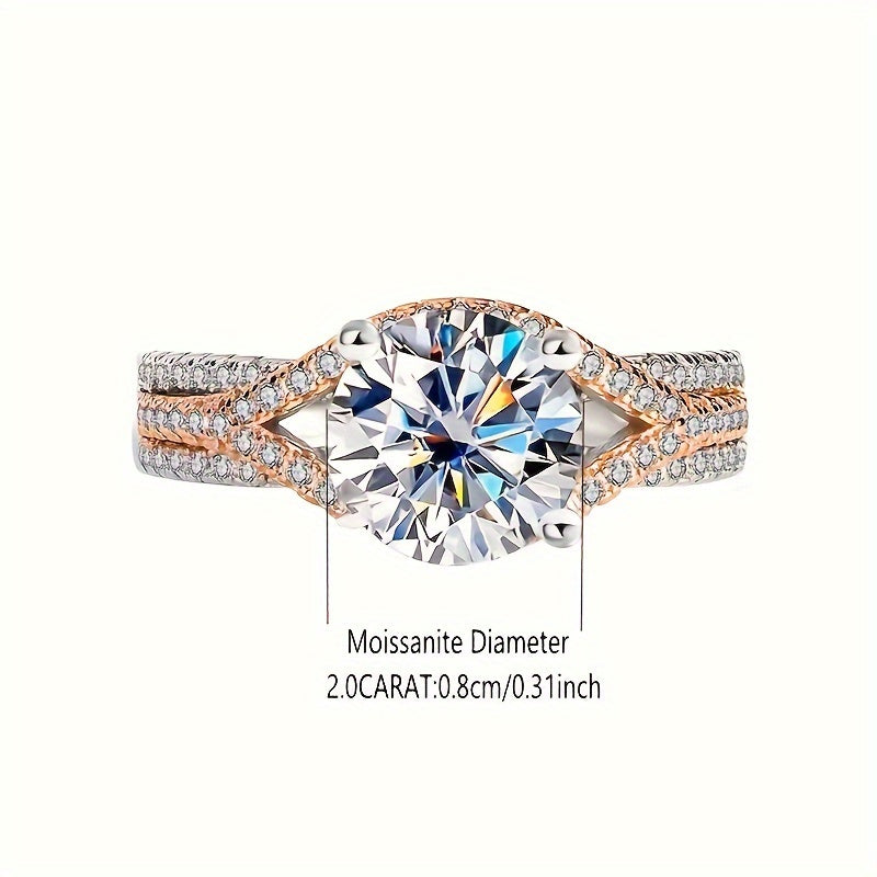 Sterling Silver 2 Carat Moissanite Ring Dual Color Engagement Wedding Jewelry