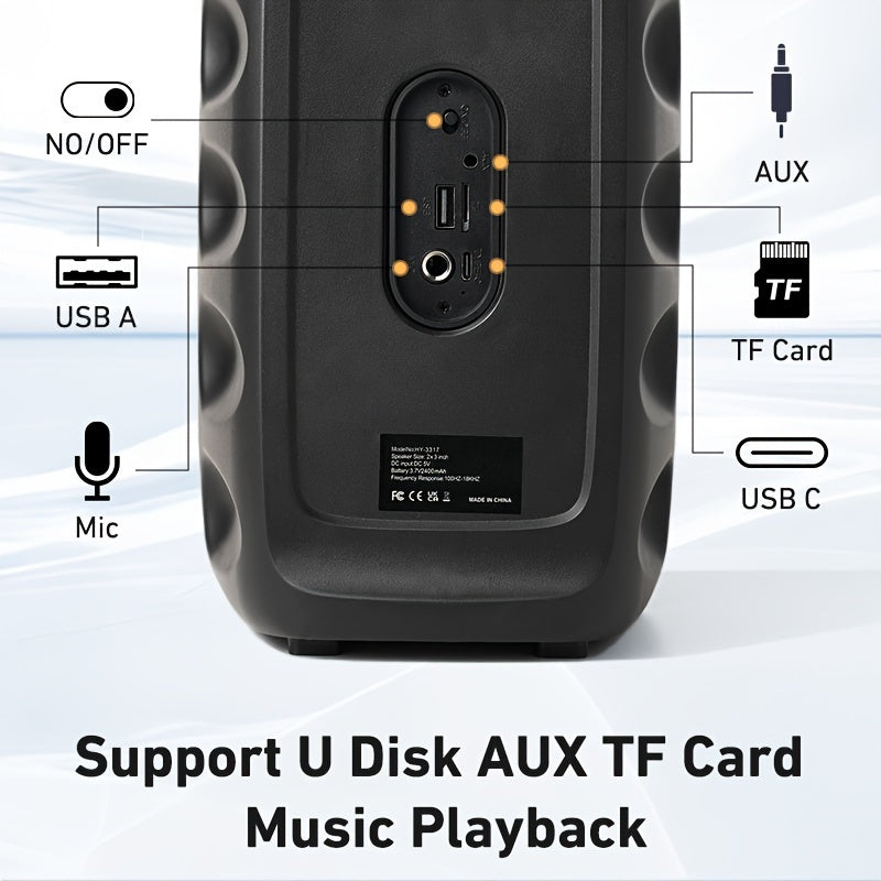 Wireless Speaker with Subwoofer Dual 10W RGB Lights FM Radio TF Card USB Battery Black