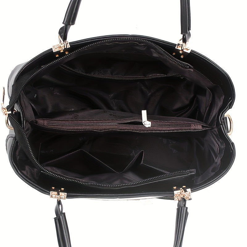 Women's Handbag Crocodile Pattern Large Capacity PU Shoulder Bag for Middle-Aged Mothers