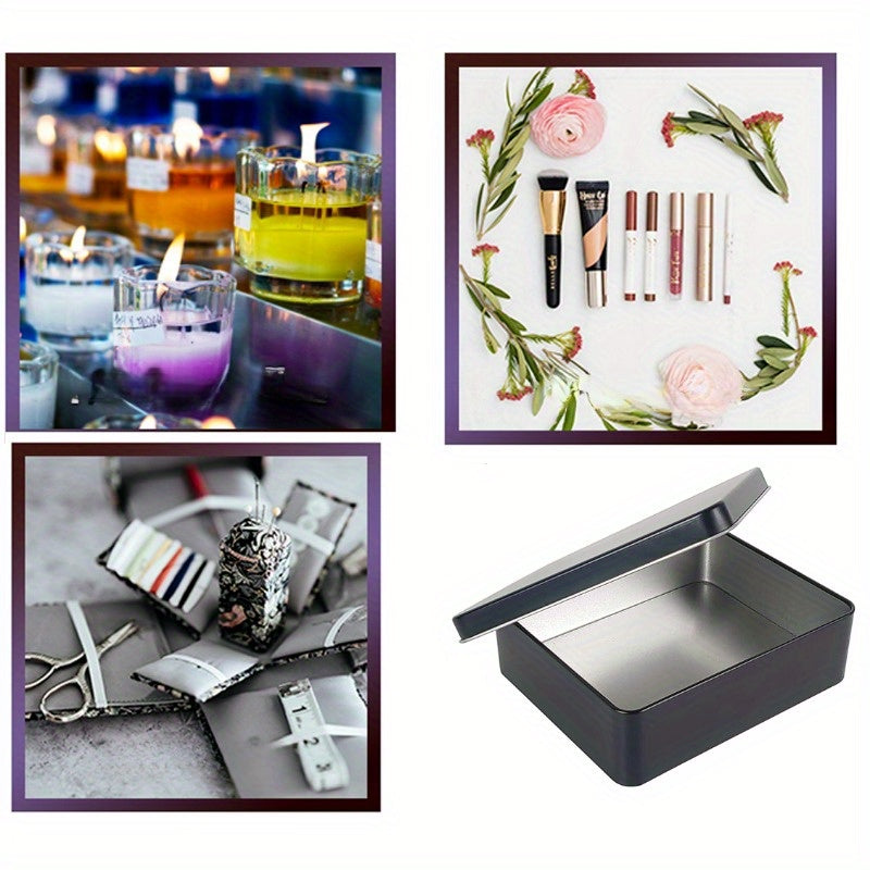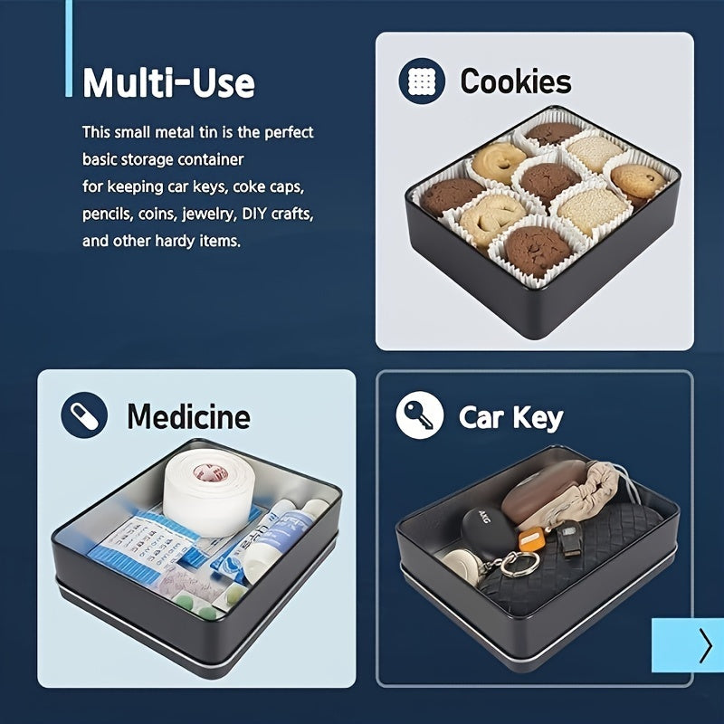 Black Metal Storage Box with Lid for Keys Cookies and Pencils 21.84x16x6.35 cm
