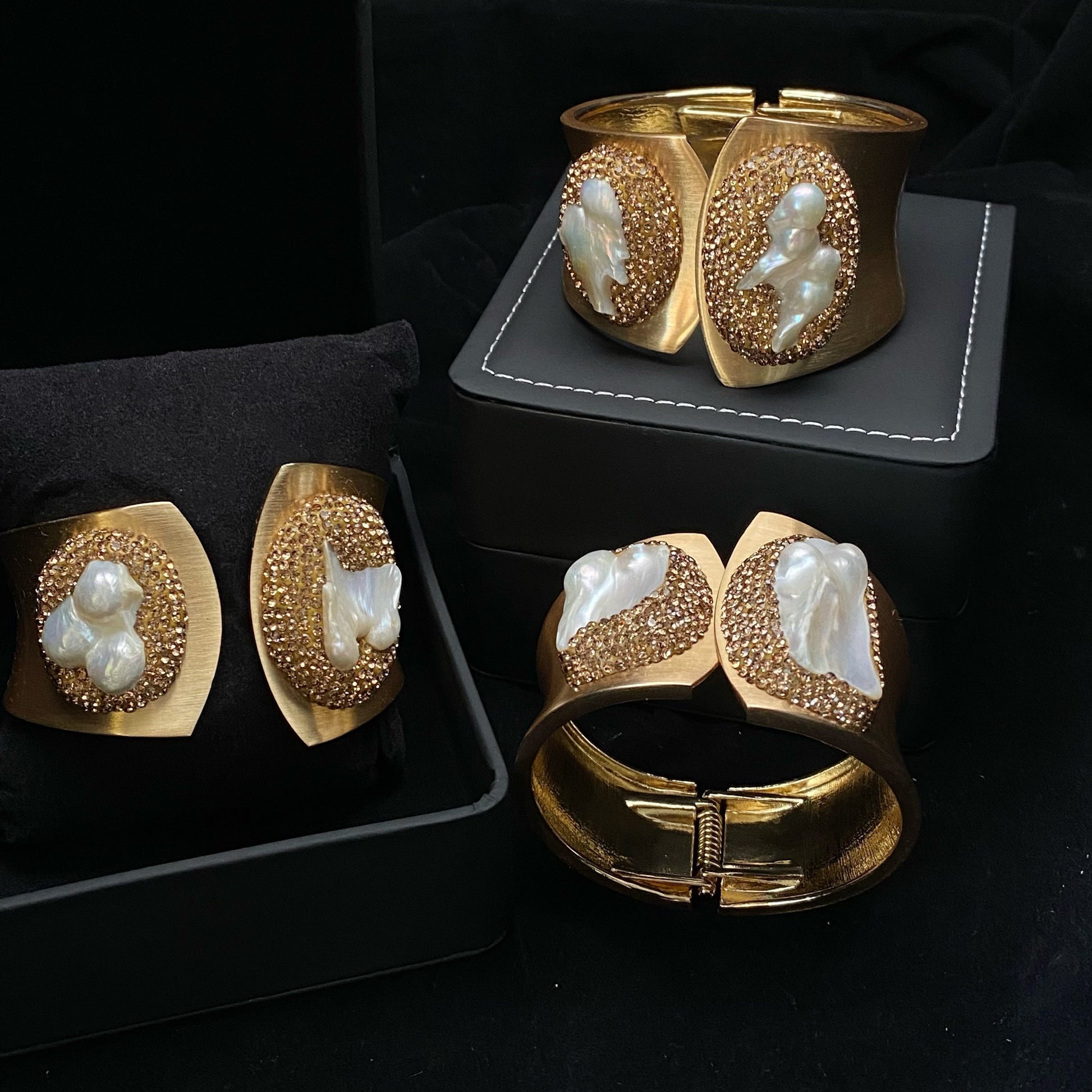 Big Baroque Pearl Bangle with Jack Brick Stone Copper Plated Noble Bracelet