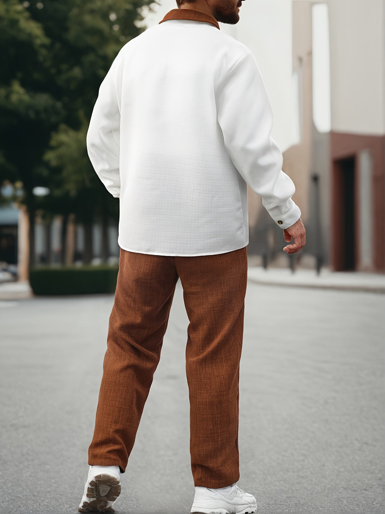 Long Sleeve Color Blocked Two-Piece Set with Suit Collar and Straight-Leg Trousers for Autumn Winter