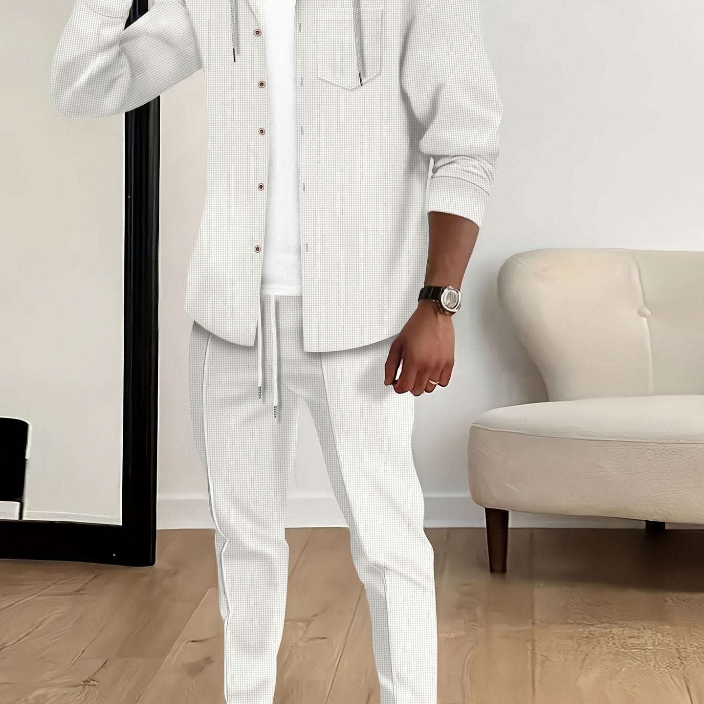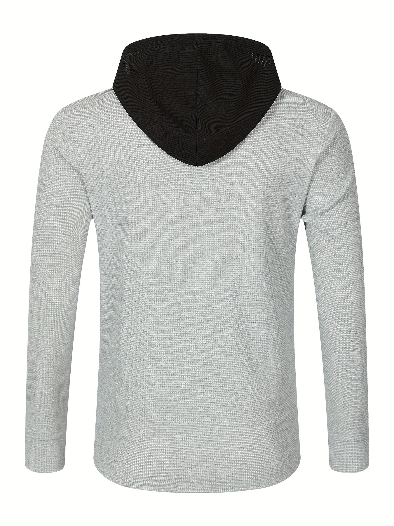 Men's Long Sleeve Hooded Waffle Solid Sports Suit Set for Spring and Autumn