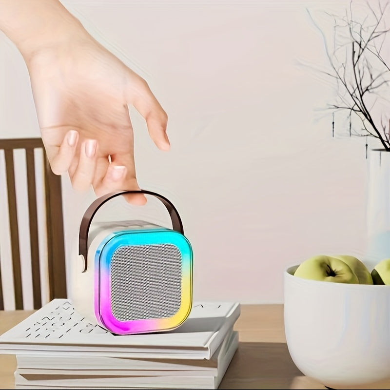 Portable Karaoke Machine with Wireless Microphone LED Lights Voice Change Support TF Card for Family Parties and Adults