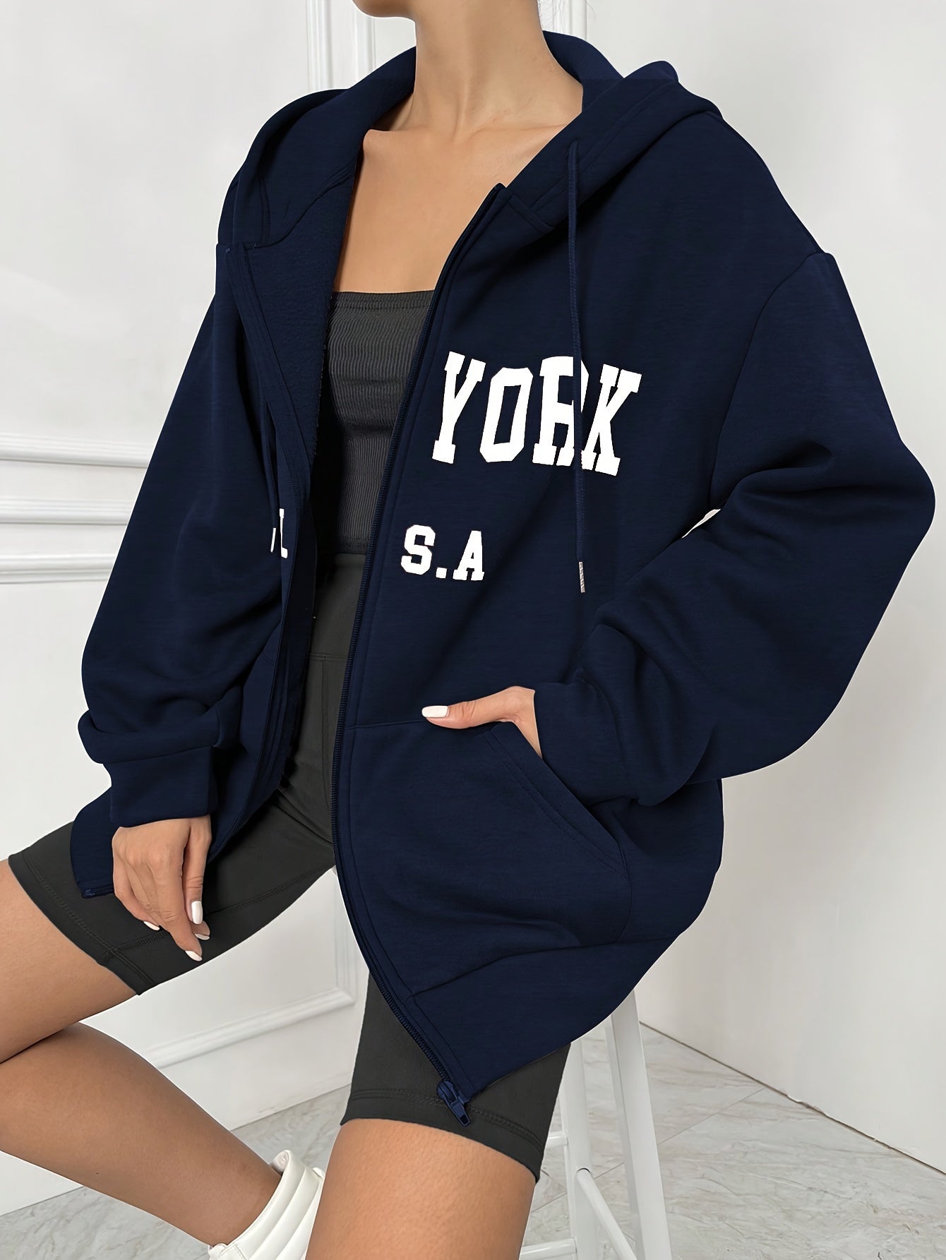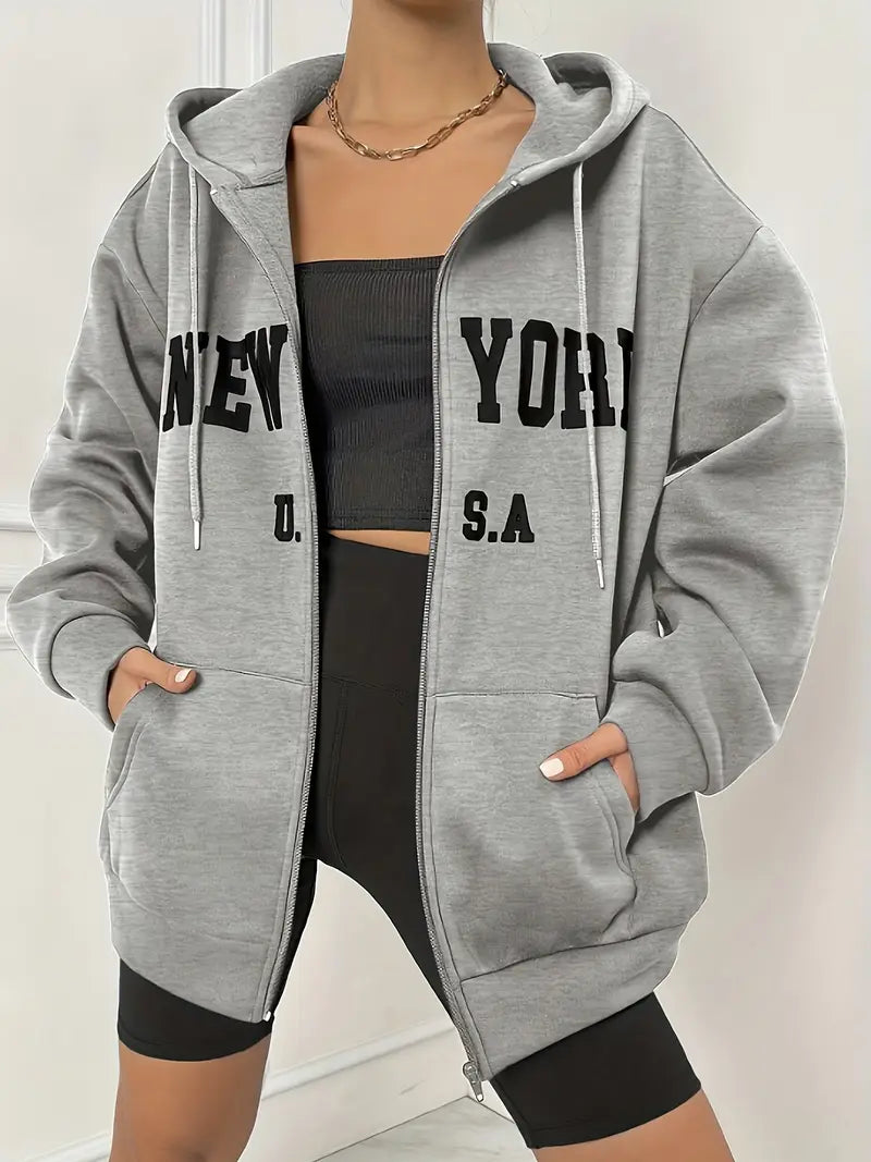 Women's Polyester Hoodie with Zip Front Kangaroo Pocket and Hooded Style