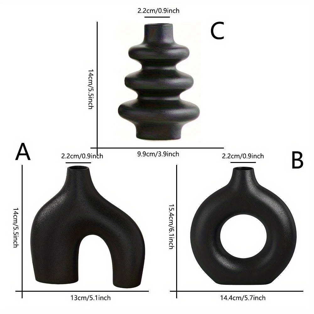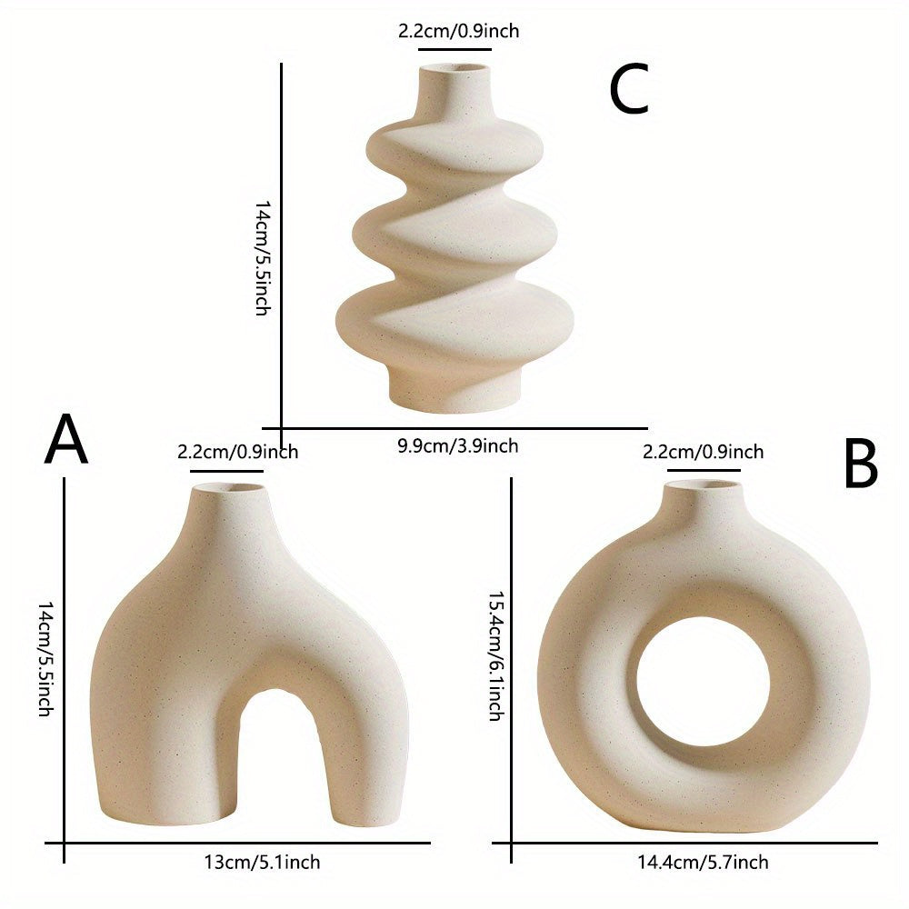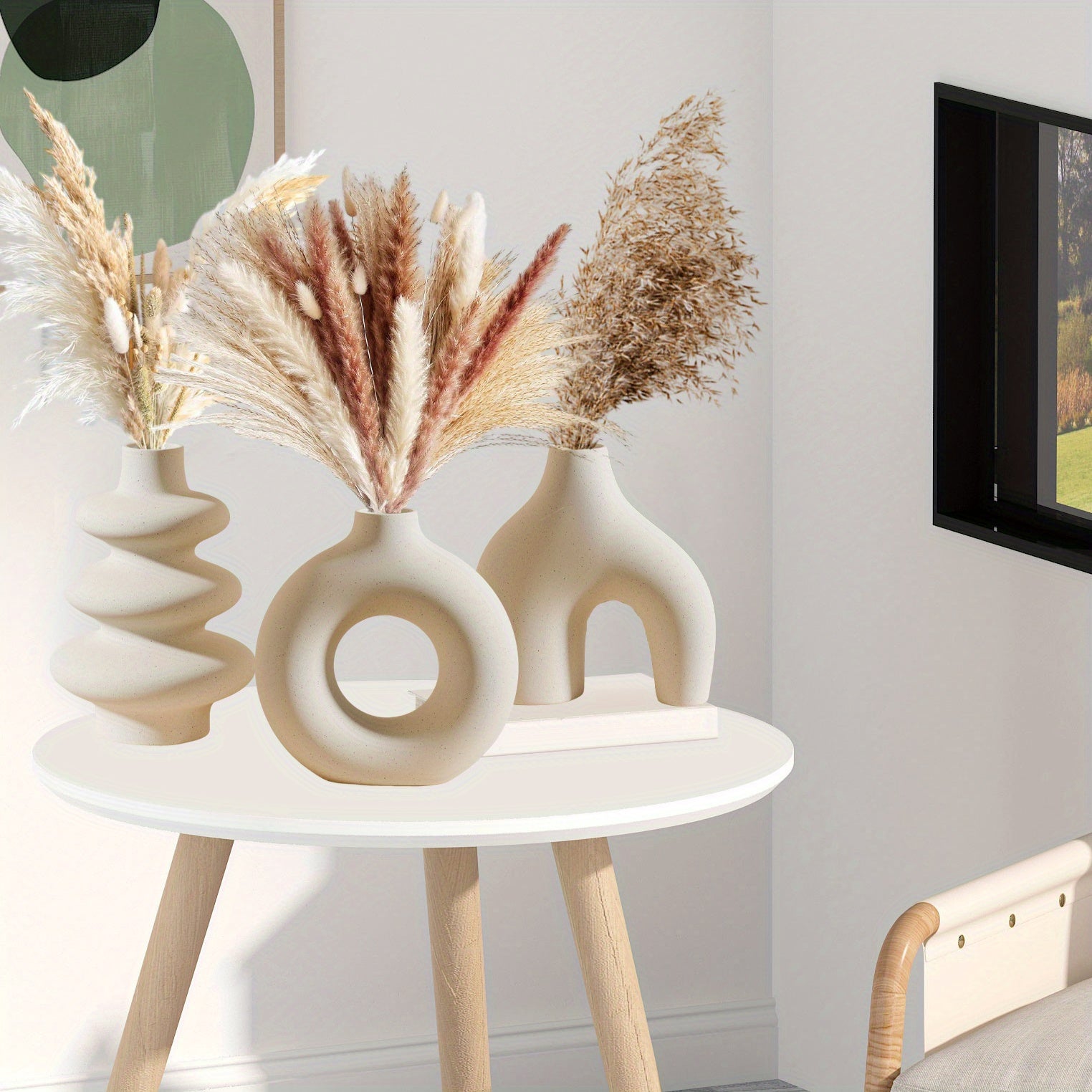 Boho White Ceramic Vase Set 3-Piece Geometric Round for Home Decor Weddings Pampas Grass