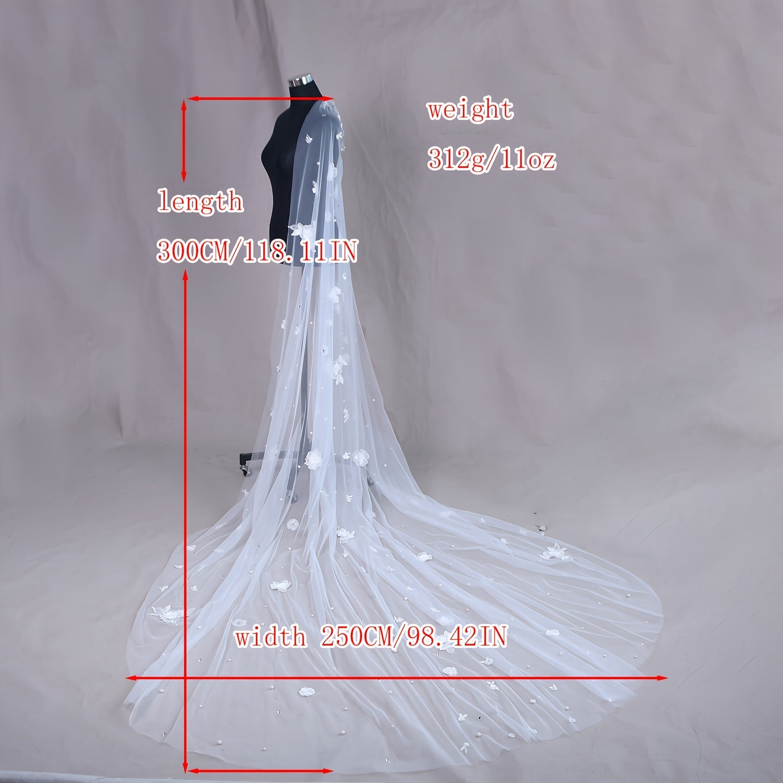 Vintage Bridal Veil with 3D Lace Flowers Nylon Hand Wash Wedding Accessory