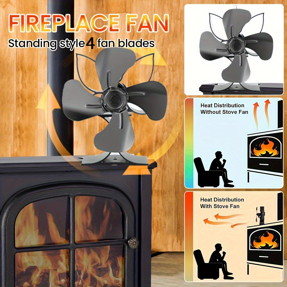 Wood Stove Fan 4-Blade Heat-Driven Wall Fan for Home Heating, No Electricity