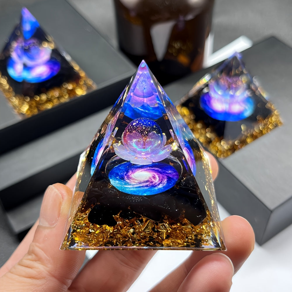 Natural Stone Orgone Energy Crystal Pyramid with Obsidian Flakes for Desk or Car Decoration