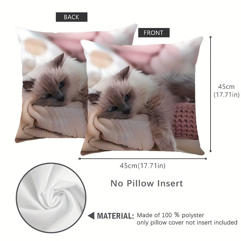 Lazy Cat Pillow Cover Double-Sided Printing 45cm Polyester French Style Zippered Washable
