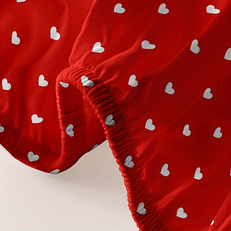 Red and White Heart Pattern Fitted Sheet for Bedroom or Guest Room