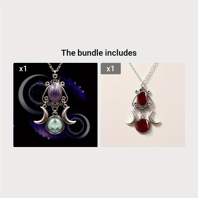 Triple Moon Goddess Pendant Necklace Silver Unisex Halloween Gift