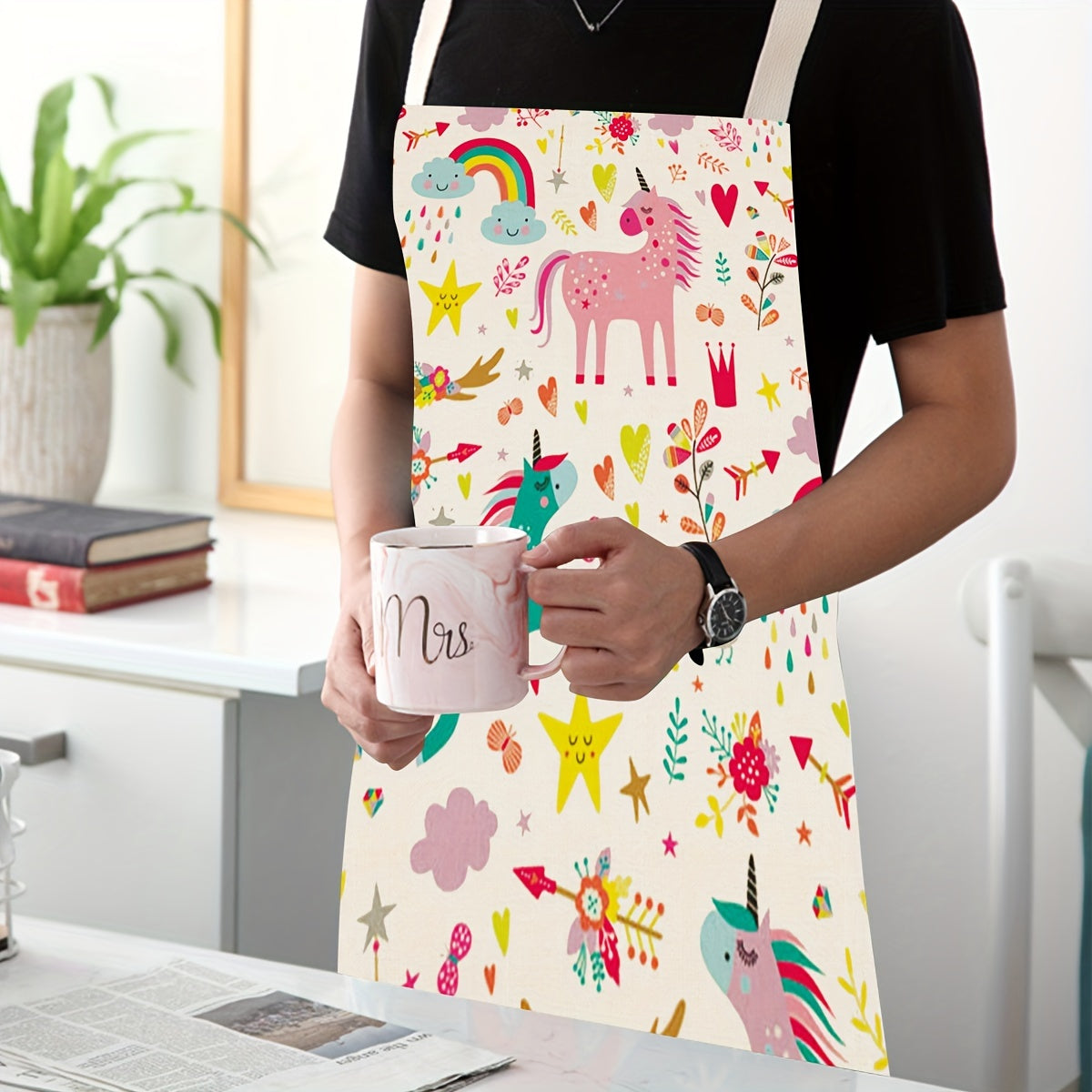 Unicorn Cartoon Apron Stain-Resistant Linen for Cooking Baking Gardening