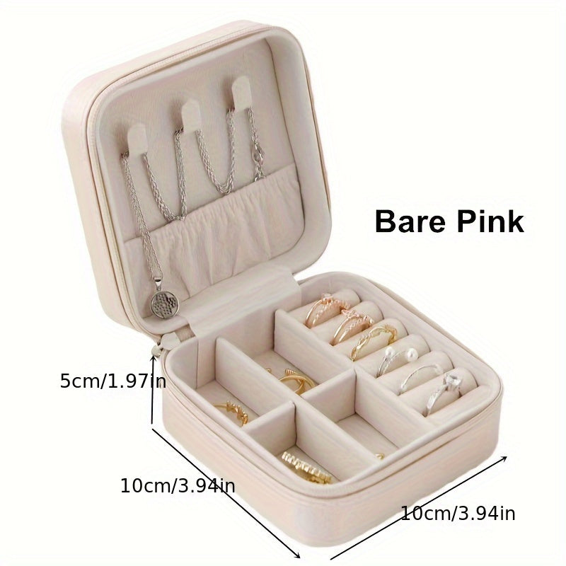 Jewelry Organizer Box Leather Zippered Storage for Necklaces Rings Bracelets Earrings