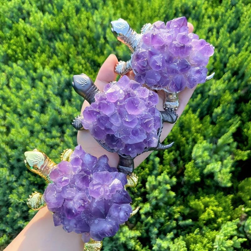 Purple Crystal Flower Turtle Ornament for Home Decor