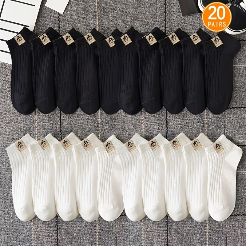 Men's Ankle Crew Socks Pack of 10/20/30 Black White Geometric Pattern Breathable Comfortable Spring Summer