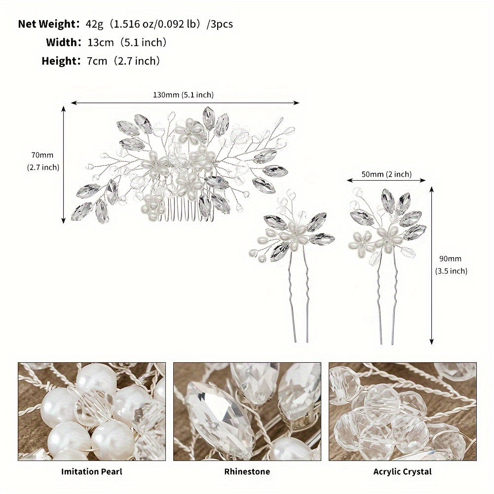 Pack of 3 Bridal Wedding Hair Comb Sets Pearl Flower Rhinestone Hair Accessories