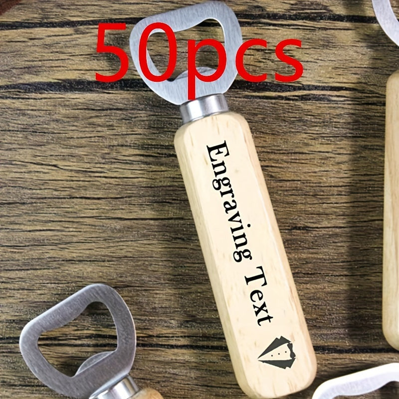 Pack of 50 Custom Engraved Wood Handle Bottle Openers Stainless Steel Beer Soda Opener
