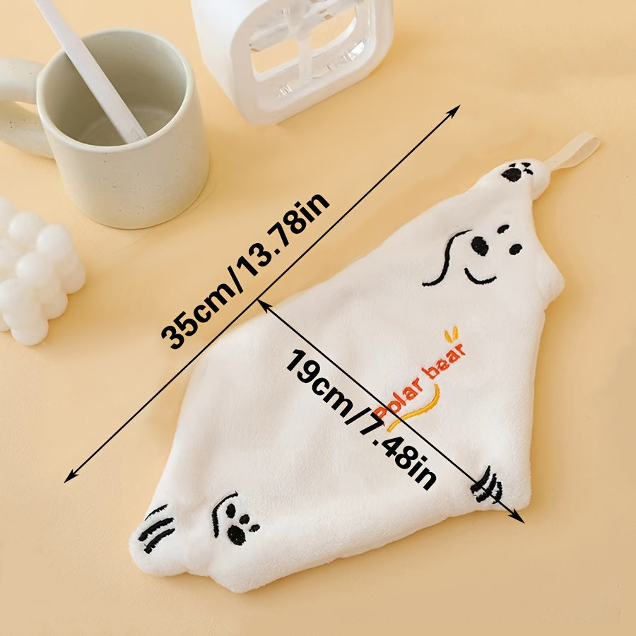 Polar Bear Hand Towels Coral Fleece Quick-Dry Absorbent Kitchen Bathroom Modern 300gsm