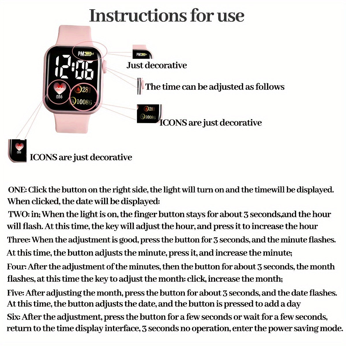 Women's Digital Watch with Silicone Band Analog Digital Display Square Plastic Case