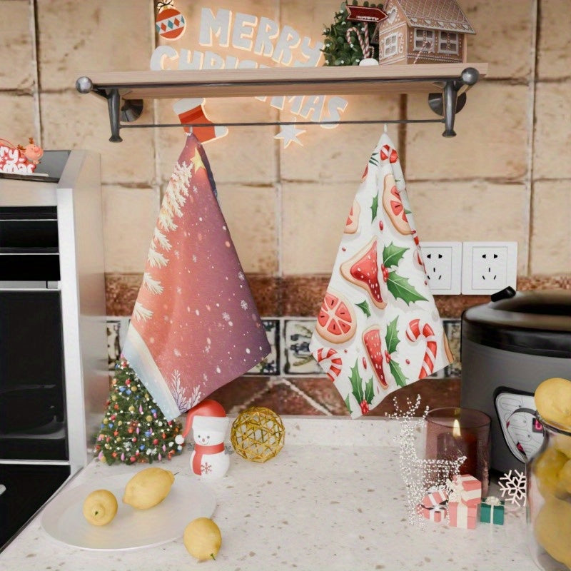 2-Pack Polyester Kitchen Towels 45.72x66.04cm Christmas Theme Durable Woven