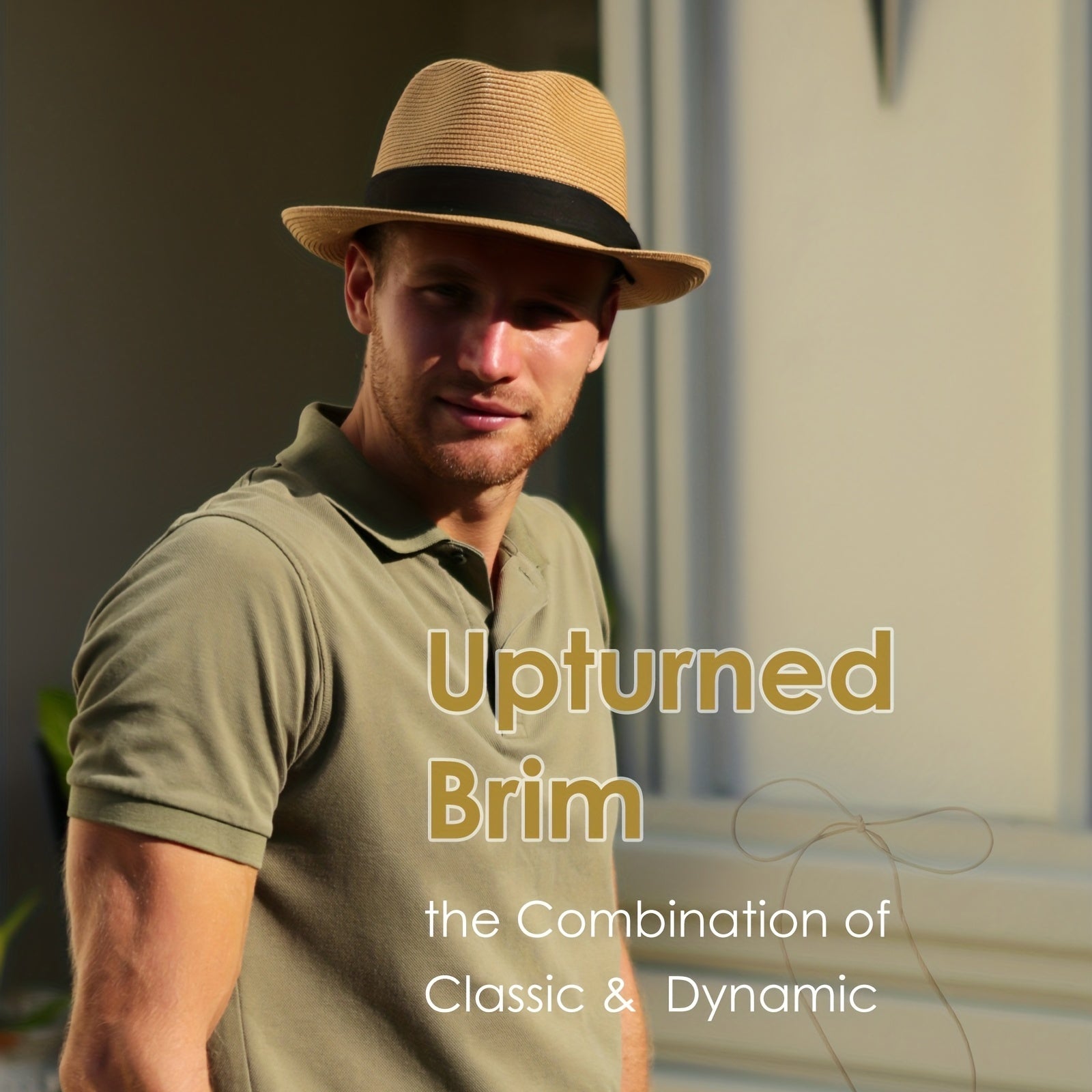 Straw Panama Hat Fedora with Wide Brim Sun Beach Hat for Men Women