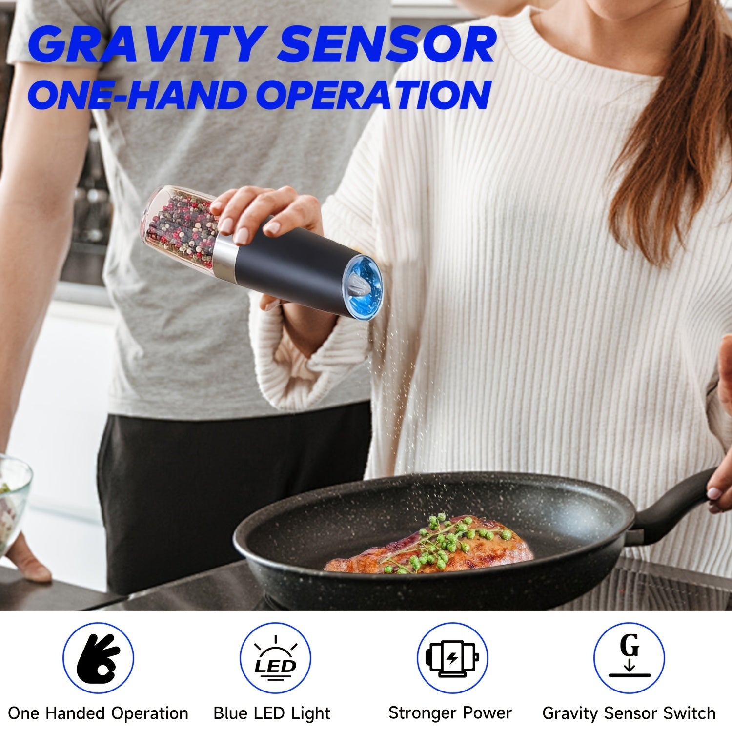 Electric Pepper and Salt Grinder Set with Adjustable Coarseness Battery Operated Stainless Steel with LED Light